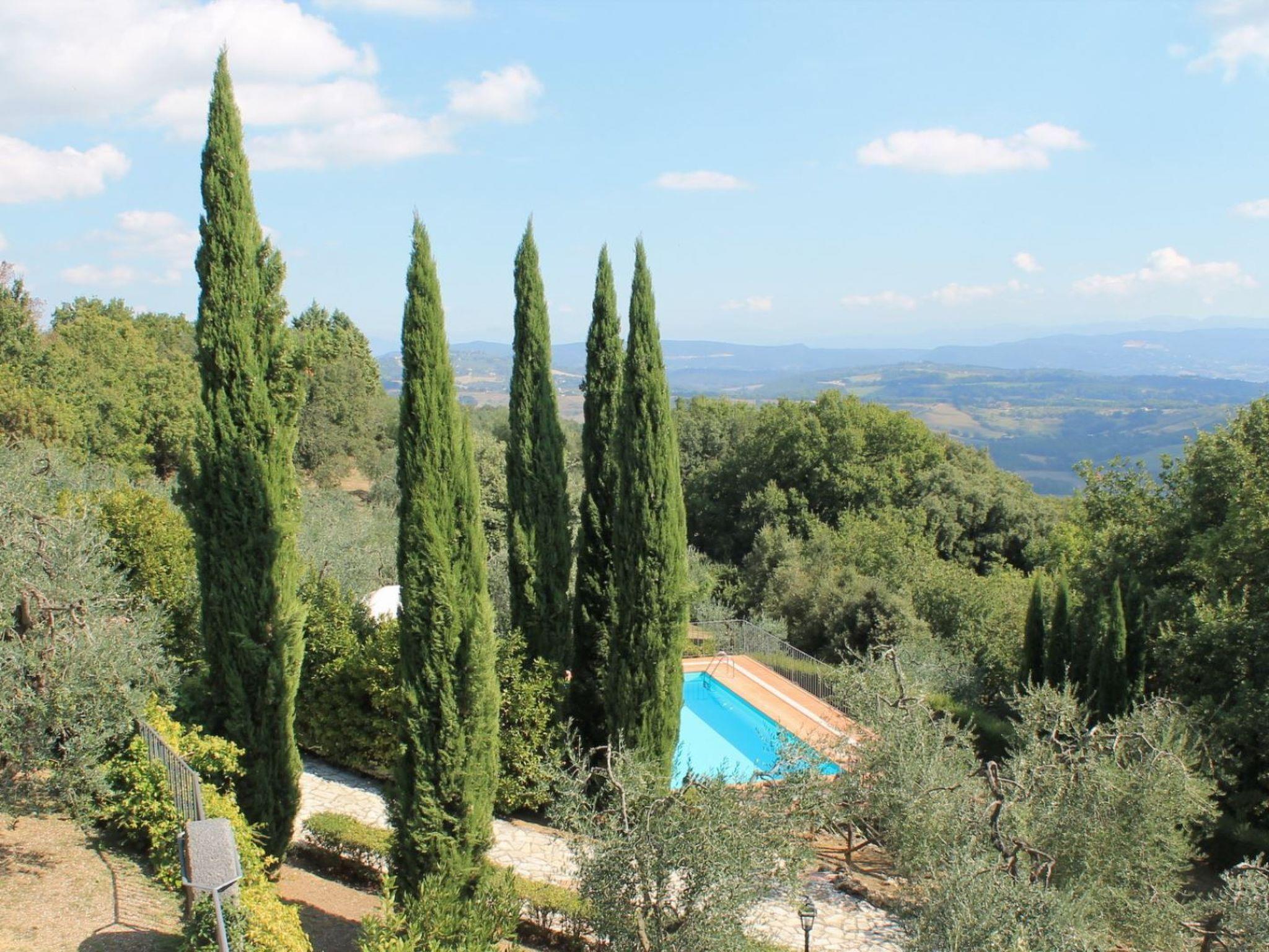 Villa Le Querce is a private villa on two floors, nestled into a hillside of olive groves, cypresses and oaks with glorious view onto the romantic hills of Umbria. Indeed, privacy and peace, set amongst spectacular landscape, are the plus point of this property. The villa is located in the south of Umbria close to the border with Lazio. Spoleto, Viterbo, Todi, Orvieto, Bolsena Lake, Montefiascone, Civita di Bagnoregio and Narni are less than one hour driving and Roma is easily reachable in 45 minutes by train from Orte which is only 10 km. The village of Penna in Teverina is only 700 metres and it is a great strength. Infact the guests can easily walk into the centre for shops, bars and restaurants without having to get the car out. The villa has been lovingly restored and retain it authentic charm. The furnishing of the spacious rooms are a harmonious blend of antiques and modern classics. This property is ideal for a large party of friends or two families holidayng together. Either way the sheer quality of this house will delight all guests who holiday here. At guests' disposal an exclusive and panoramic pool of 10 x 5 meters (depth 1,4 m) open from 01/06 to 30/09. Electric gates - Private pool (10 x 5) with gazebo and shower - Outside eating area with verandah, gazebo, wood oven and barbecue - Laundry room with washing machine and ironing facilitiesGround floorLiving/dining room with fireplace, sofa bed, air conditioning, wifi and TVKitchen with dishwasher, 5 stoves, oven, fridge and toaster2 Double bedded rooms (one with a single bed)1 Twin bedded room1 BathroomToiletFirst floorLiving/dining room with fireplace, air conditioning, wifi and TVKitchen with dishwasher, 5 stoves, oven, fridge and kettle1 Double bedded room1 Double bedded room with balcony1 Bunk bedded room1 Bathroom with washing machine1 ToiletPenna in Teverina (Shops and Restaurant) 700 mtOrte (Train Station to Rome) 10 KmViterbo 38 KmNarni 27 KmCivita di Bagnoregio 27 KmTodi 49 KmMontefiascone 48 KmBolsena 63 KmOrvieto 43 KmRoma 86 Km
