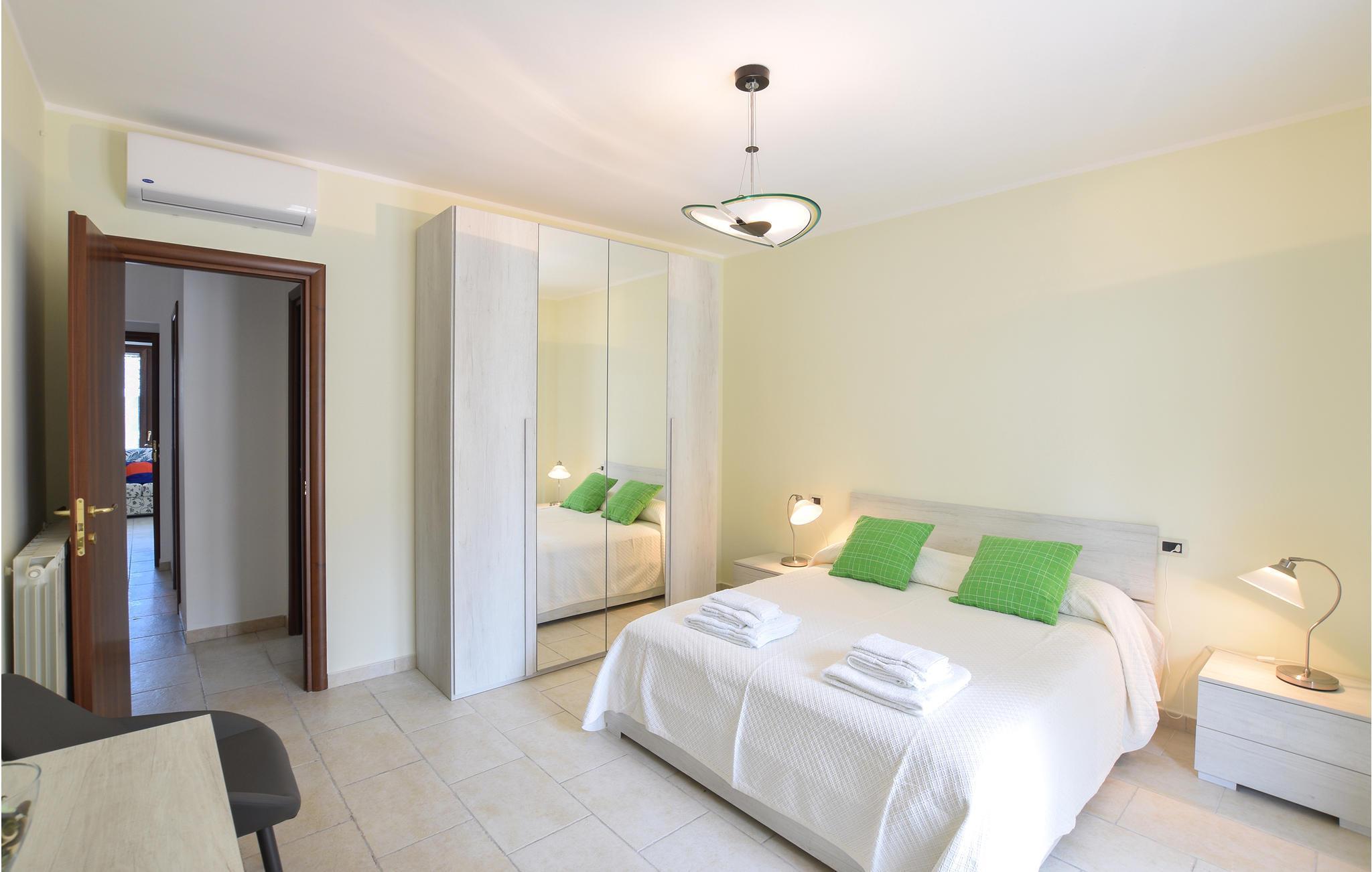 Lejligheden ligger i stueetagen og byder på tre soveværelser med komfortable dobbeltsenge samt to badeværelser, hvilket giver plads til op mod otte personer, der kan tilbringe en dejlig ferie her sammen. Interiøret er behageligt og lyst, og her er alt, hvad I skal bruge til en vellykket ferie.