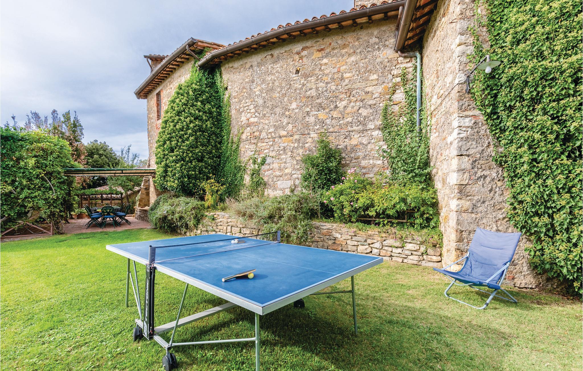 Mellem den etruskiske by i bakkerne Chiusi og Perugia (hver 30 km), på en bakke på 700 m, ligger Greppolischieto, en af de mest maleriske fæstningsbyer i Umbrien, med udsigt til Lago Trasimeno. Denne middelalderlige Borgo er restaureret, så det der oprindeligt var præstebolig nu er indrettet som feriehus (halvdelen af et dobbelthus). Herfra er der en uforglemmelig udsigt over det grønne bakkelandskab. I den velplejede have ligger husets privat pool med terrasse til solbad, forskellige siddegrupper, den ene med grill og en skyggefuld pergola med udendørs køkken. Desuden er der bordfodbold og bordtennis. I har adgang til en grøntsags have hvor I må forsyne jer frit. Dette feriehus er lige noget for jer der vil bo i rolige og afslappede omgivelser med historisk charme i en autentisk Borgo. Omgivelserne er perfekt til udflugter til Lago Trasimeno med bademuligheder og en tur i båd til de små øer (25-30 km); Chiusi med sit etruskermuseum, Umbriens hovedstad Perugia, Castiglione del Lago med sin borg og mange små butikker, hvor I kan købe lokale specialiteter (ca. 30 km), den imposante etrusker by Orvieto (ca. 50 km) og kurbadene i San Casciano dei Bagni (40 km). Nærmeste by er Tavernelle (9 km) hvor der er alle former for butikker. I stueplan er der et godt udstyret køkken i åben forbindelse med stuen, som er husets centrale midtpunkt. Soveværelser og badeværelser er fordelt på tre etager, på første sal er der desuden en hyggelig stue med åben kamin.