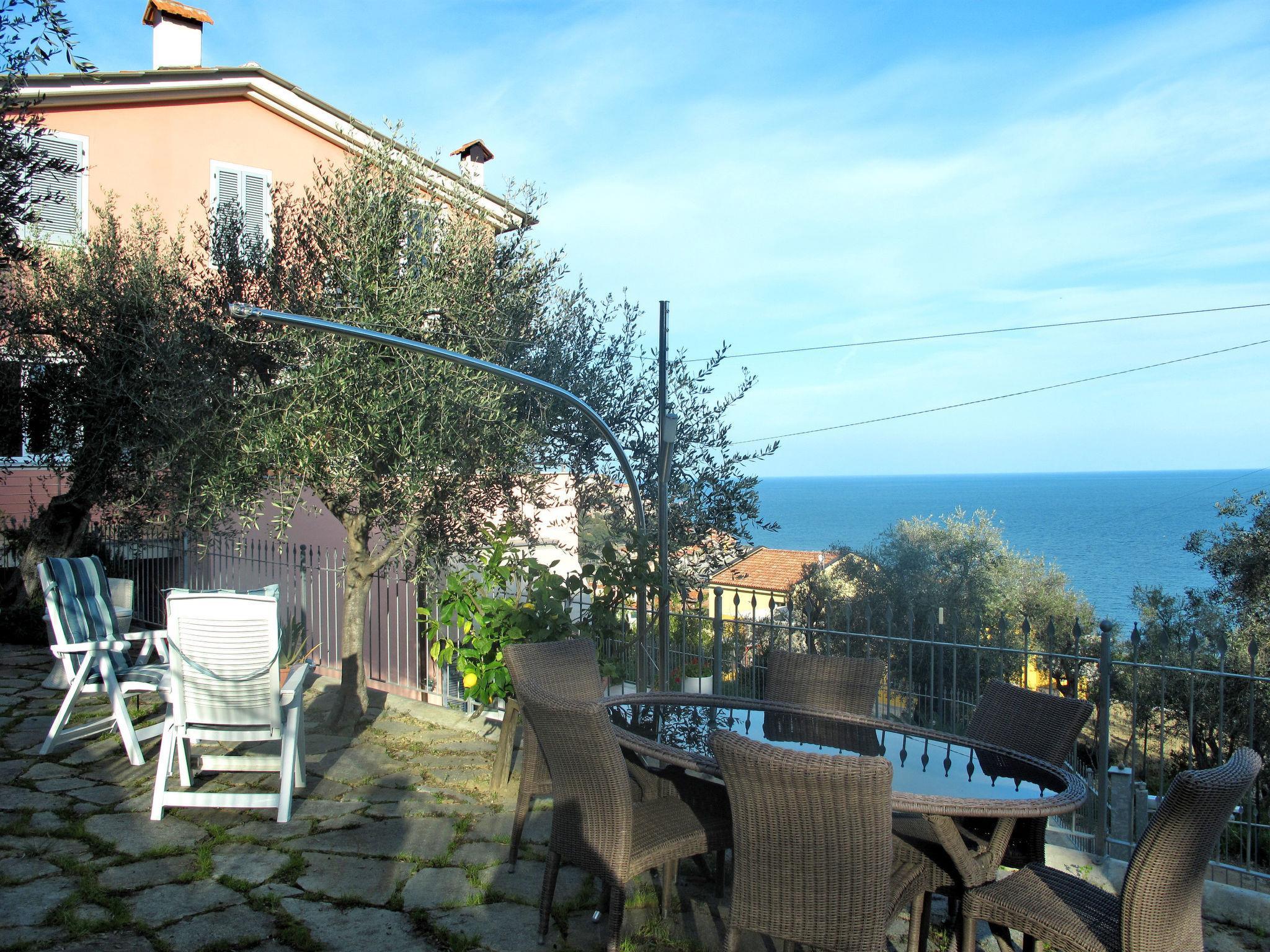 "Ulivi sul Mare", 2-room apartment 45 m2 on 1st floor. Bright, modern and cosy furnishings: living/sleeping room with 1 double sofabed (140 cm), dining table and satellite TV. Exit to the terrace. 1 room with 1 french bed (160 cm). Open kitchen (oven, 4 gas rings, toaster, kettle, microwave, electric coffee machine). Shower/bidet/WC. Electric heating, air-conditioning. Balcony, patio. Balcony furniture, barbecue (portable), deck chairs (4). Very beautiful view of the sea and the bay. Facilities: washing machine, safe, iron. Internet (WiFi, free). Please note: private entrance. IT008031C2NUGIR95I