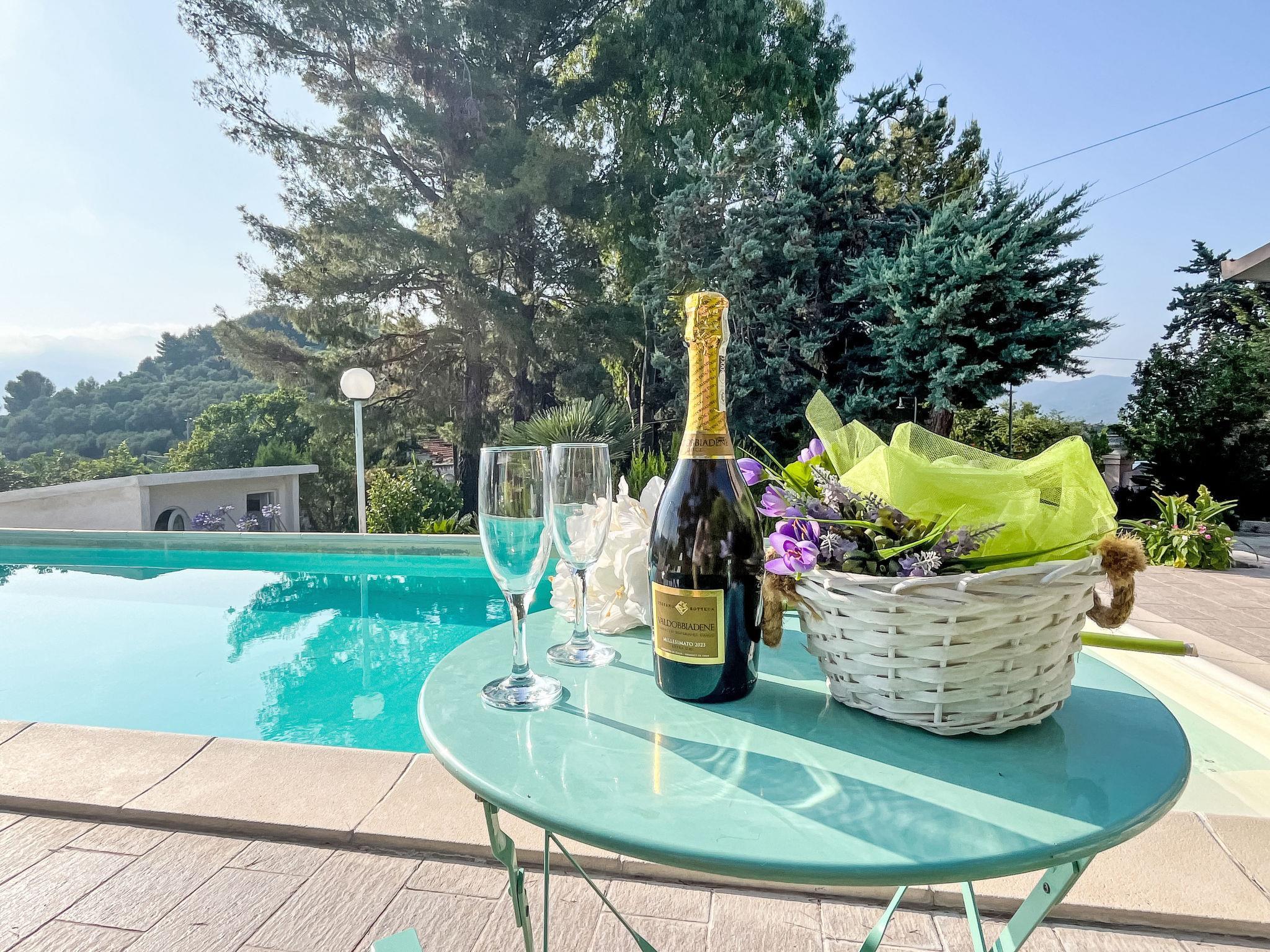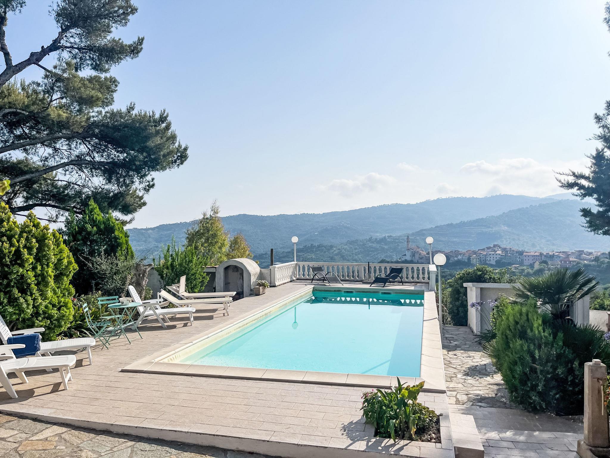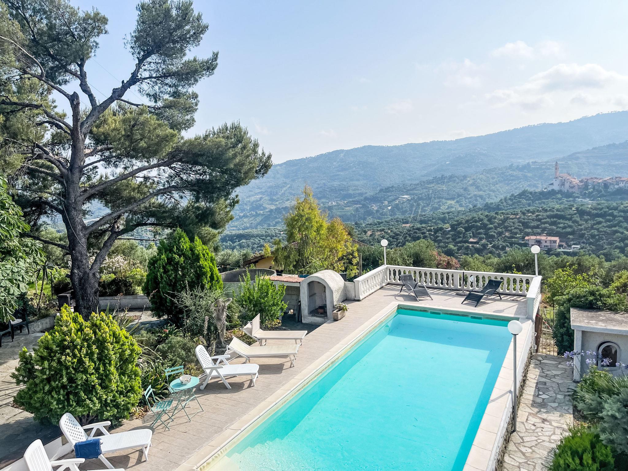 2-family house "Villa Jose", 2 storeys, detached, surrounded by trees and fields. Above Poggi 2.5 km from the centre of Poggi, 7 km from the centre of Imperia - Porto Maurizio, 27 km from the centre of San Remo, on top of a hill, 4.5 km from the sea, in the countryside. For shared use: property 5'000 m2 (fenced) with plants and trees, swimming pool (10 x 4 m, depth 140 cm, seasonal availability: 15.May. - 30.Sep.). Patio, terrace, garden furniture. In the house: washing machine (for shared use). Parking on the premises. Shop 800 m, supermarket 5 km, bus stop 190 m, railway station "Imperia/Porto Maurizio" 8 km, sandy beach "Imperia - Porto Maurizio/Borgo Prino" 5 km, indoor swimming pool 8 km. Marina 9 km. Part of the house is closed and unoccupied.