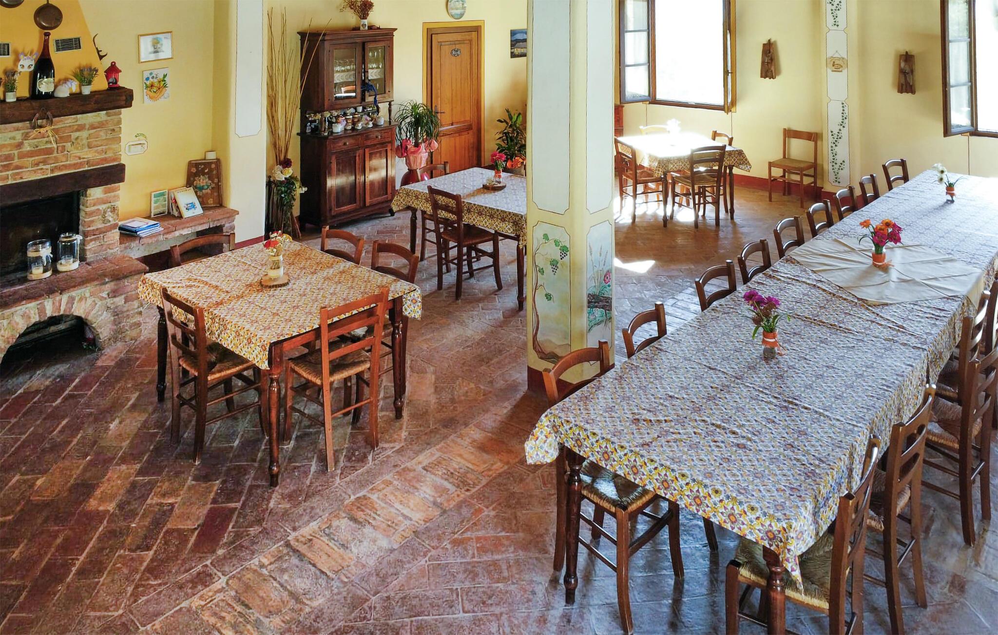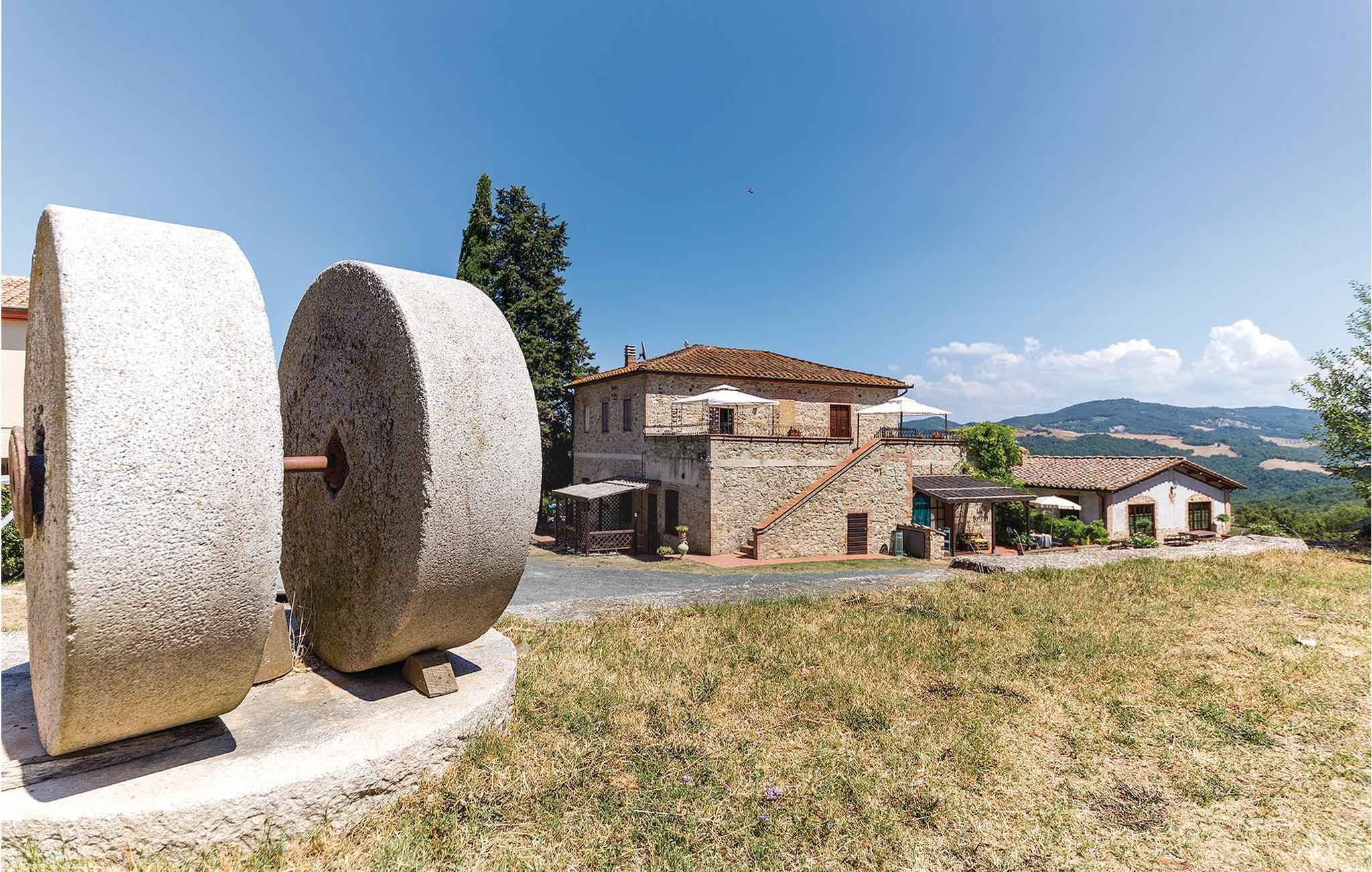 Ferielejligheder på en 350 hektar stor gård i en fredelig oase med masser af ro og smuk panoramaudsigt. Ejendommen ligger nær Volterra og består af et bondehus, hvor ejerne bor, et andet stort hus, hvori der er skabt 6 ferielejligheder, og en tidligere hølade med en restaurant-spisestue (ikke åben for offentligheden, hvor der serveres typiske retter). efter anmodning (ikke inkluderet i lejen). Der bor hunde, katte, køer, grise, heste, høns og gæs. Der er også en stor pool med et separat område for børn til din rådighed. Fælles vaskerum. Skyggefuld parkeringsplads. Udlejning af mountainbikes. Udflugtstips: Pomarance 9 km, Volterra 25 km, Cecina og dens strande 35 km, Pisa og Siena 70 km, Firenze 85 km.