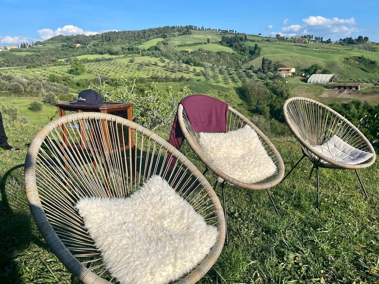 Umgeben wird unser Landgut von einem 300 qm großen Garten mit typisch toskanischer Vegetation und 15 Hektar Land, gespickt von einem großen Olivenhain und Weinbergen aus Sangiovese, Merlot und Vermentino, woraus jedes Jahr hochwertiges kaltgepresstes Olivenöl, sowie eigener Wein produziert werden.