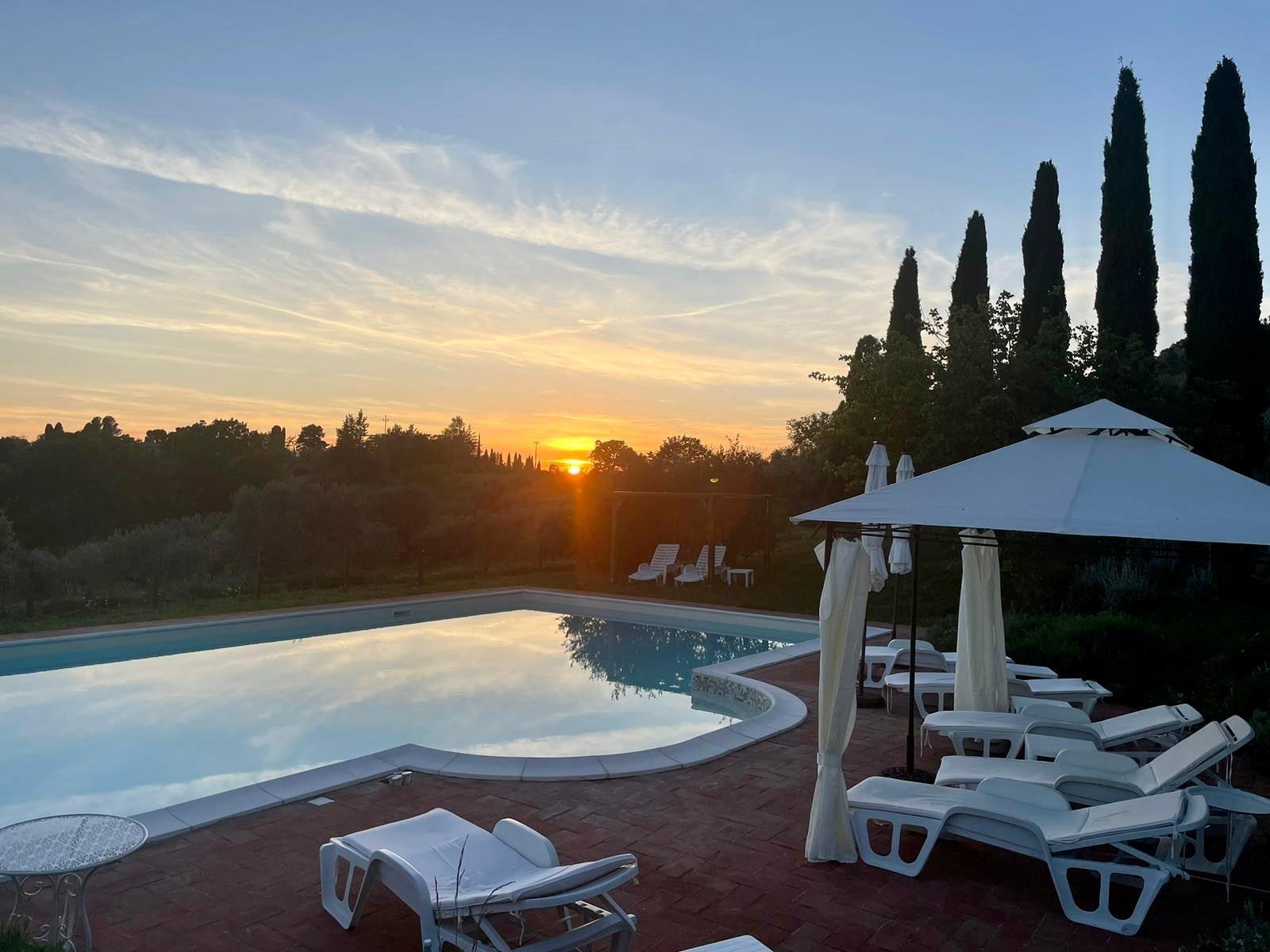 Auf der überdachten Sonnenterrasse können Sie im Schatten den Tag genießen und Abends die wunderschönen toskanischen Sonnenuntergänge erleben.