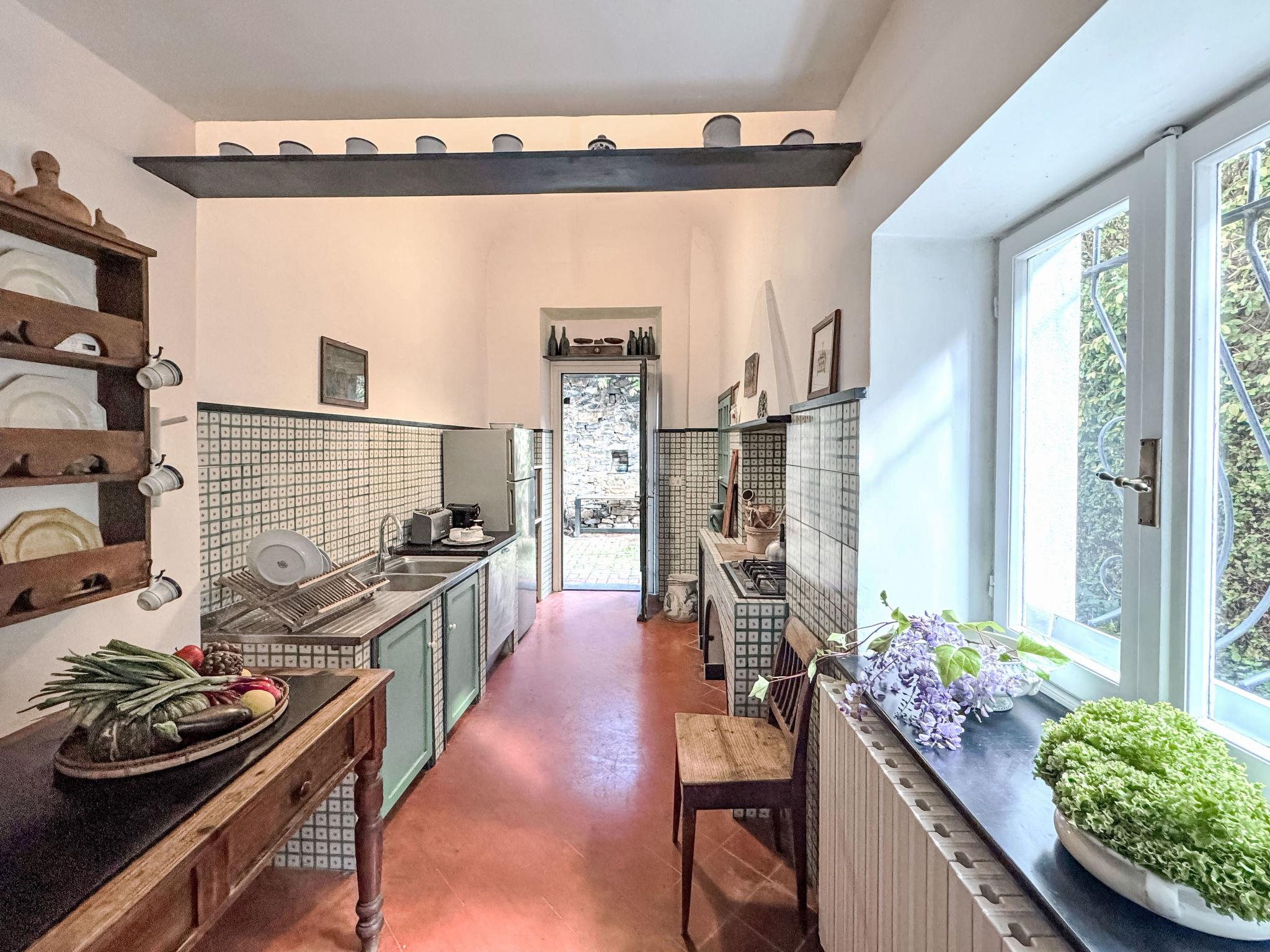 Comfortable, historical villa, 3 storeys, detached, surrounded by trees and vineyards. 1 km from the centre of Pontedassio, 7 km from the centre of Imperia, 13 km from the centre of Diano marina, 9 km from the sea. Private: park 2'000 m2, terraced garden, natural garden, meadow, orchard, swimming pool (10 x 5 m, depth 100 - 160 cm, seasonal availability: 15.May. and 30.Sep.). Shower/WC in the pool area. In the house: fitness room, storage room for bicycles. Parking on the premises. Grocery 1 km, supermarket 1 km, shopping centre 1 km, restaurant 1 km, bicycle rental 1 km, bus stop 300 m, railway station "Imperia Oneglia" 7 km, sandy beach "Imperia" 9 km. Cycle lane 7 km. Please note: car recommended. Loading and unloading of baggage is possible at the holiday house.