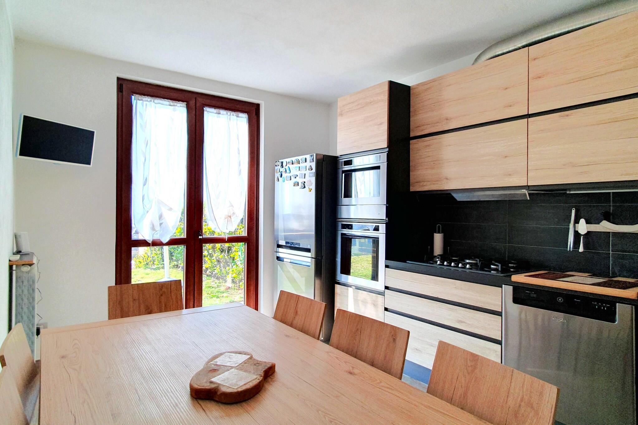 Denne lejlighed i stueetagen, beliggende i det charmerende område Poppino, tilbyder et komfortabelt og veludstyret opholdsrum til et afslappende ophold. Stuen har en dobbelt sovesofa, et tv og et hyggeligt opholdsområde, der giver et indbydende sted at slappe af. Det store køkken er fuldt udstyret med kogeplader, emhætte, opvaskemaskine, køle-fryseskab og håndvask samt et spisebord, hvilket gør det perfekt til at tilberede og nyde måltider sammen. Der er to soveværelser: et med en dobbeltseng og et tv, og det andet med en enkeltseng, hvilket sikrer komfortable sovearrangementer. Lejligheden har et moderne badeværelse med bruser, håndvask, toilet og bidet samt et separat toiletområde for ekstra bekvemmelighed. Til dine vaskebehov er der en tørretumbler, vaskemaskine og en ekstra håndvask til rådighed. Udenfor finder du en privat, indhegnet, anlagt have, ideel til at nyde udendørs. Haven er udstyret med havemøbler og liggestole, hvilket skaber de perfekte omgivelser til at slappe af i solen. Lejligheden tilbyder også parkering for din bekvemmelighed. Uanset om du søger komfort eller udendørs nydelse, giver denne lejlighed i Poppino de perfekte rammer for dit ophold.