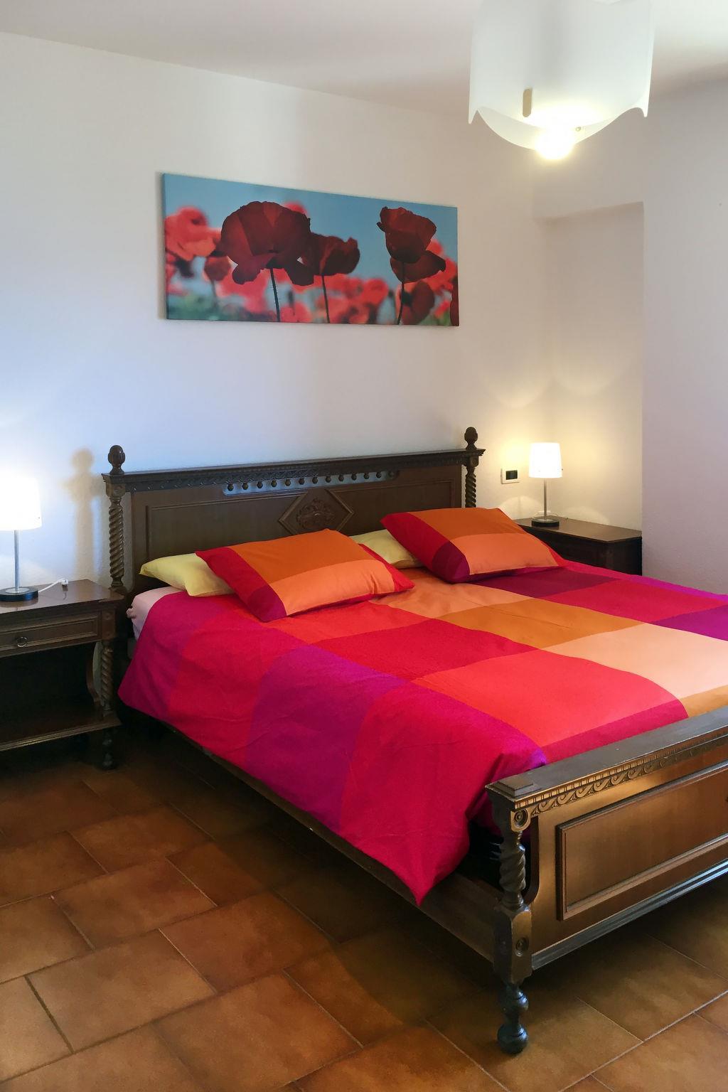 4-room apartment 90 m2 on 2nd floor. Practical furnishings: living/dining room with open-hearth fireplace, dining table and satellite TV. 2 rooms, each room with 2 beds. 1 double bedroom. Open kitchen (5 hot plates, oven, dishwasher, toaster, microwave, electric coffee machine). Shower/WC. Gas heating. Natural stone floors. Terrace, patio. Terrace furniture, barbecue, deck chairs (2). Very beautiful panoramic view of the lake and the mountains. Facilities: iron, children's high chair, baby cot, hair dryer, baby changing unit. Internet (WiFi, free). Please note: non-smokers only. Maximum 1 pet/ dog allowed. Private entrance. IT013077C25QVR2I44