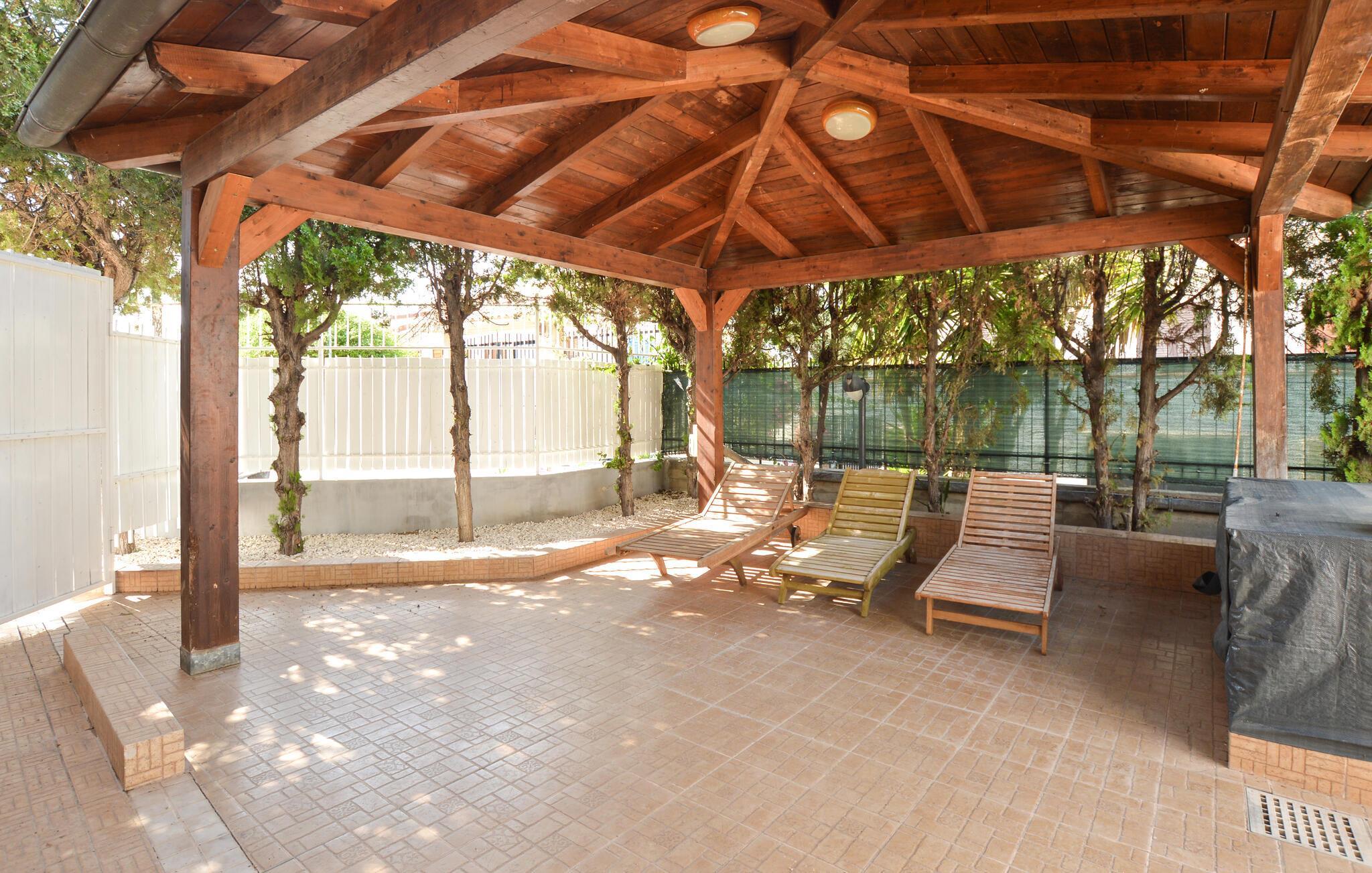 Server jer selv en lækker morgenmad på den skyggefulde terrasse og brug de komfortable loungemøbler til at nyde den gyldne aftensol. Tænd grillen og fejr tiden sammen på stemningsfulde aftener i den varme sommerluft eller fordyb jer i en underholdende bog af Andrea Camilleri på liggestolen.
