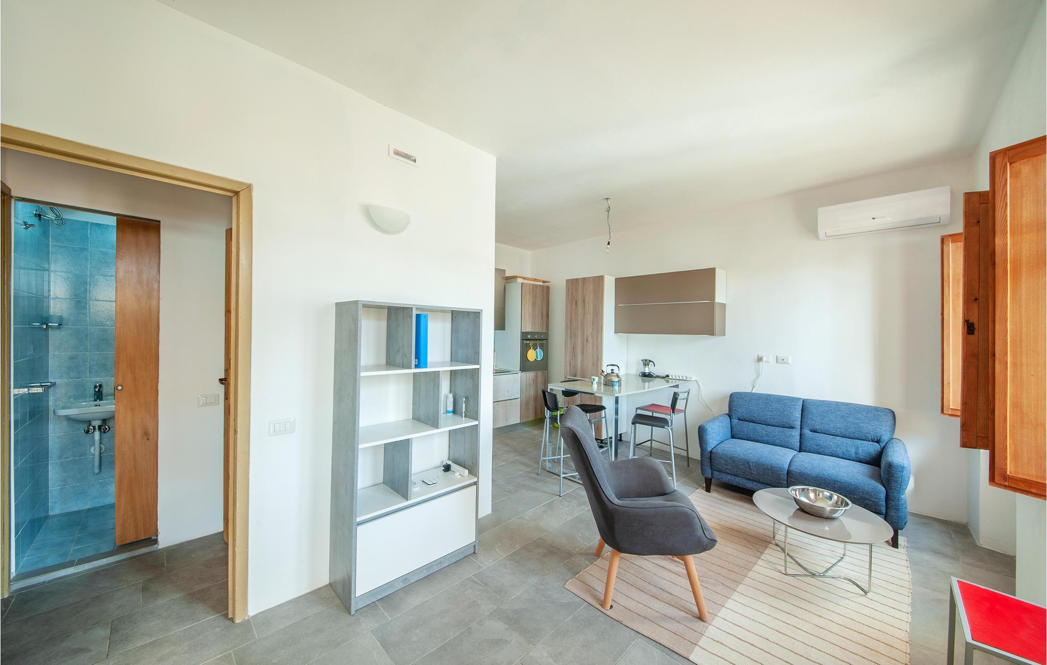 Lejligheden er lys og har to badeværelser, et soveværelse med en køjeseng og et dejligt dobbeltværelse med havudsigt. Fra stuen kan I også nyde havudsigten. Porto Palma er det ideelle sted for dem, der elsker havet og roen. Stranden er også ideel til familier med børn, fordi havbunden er lav, og selv når den karakteristiske mistralvind blæser, forbliver området beskyttet. Kysten er fuld af bugter, der er inden for gåafstand.