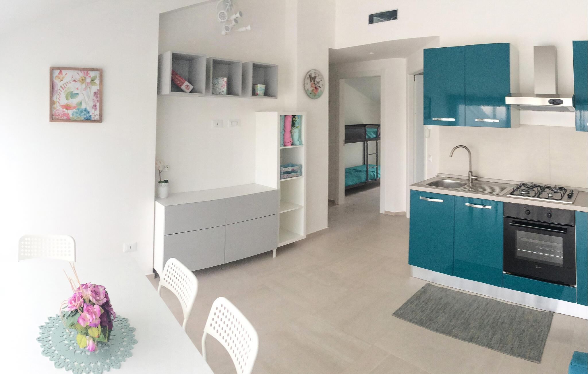 Kun en kort gåtur fra kysten byder denne lyse og smagfulde ferielejlighed velkommen. Tilbered måltiderne i det rummelige køkken og tag plads ved det indbydende spisebord. Efter en lang dag kan I læne jer tilbage på sofaen, læse en bog eller streame en god film.