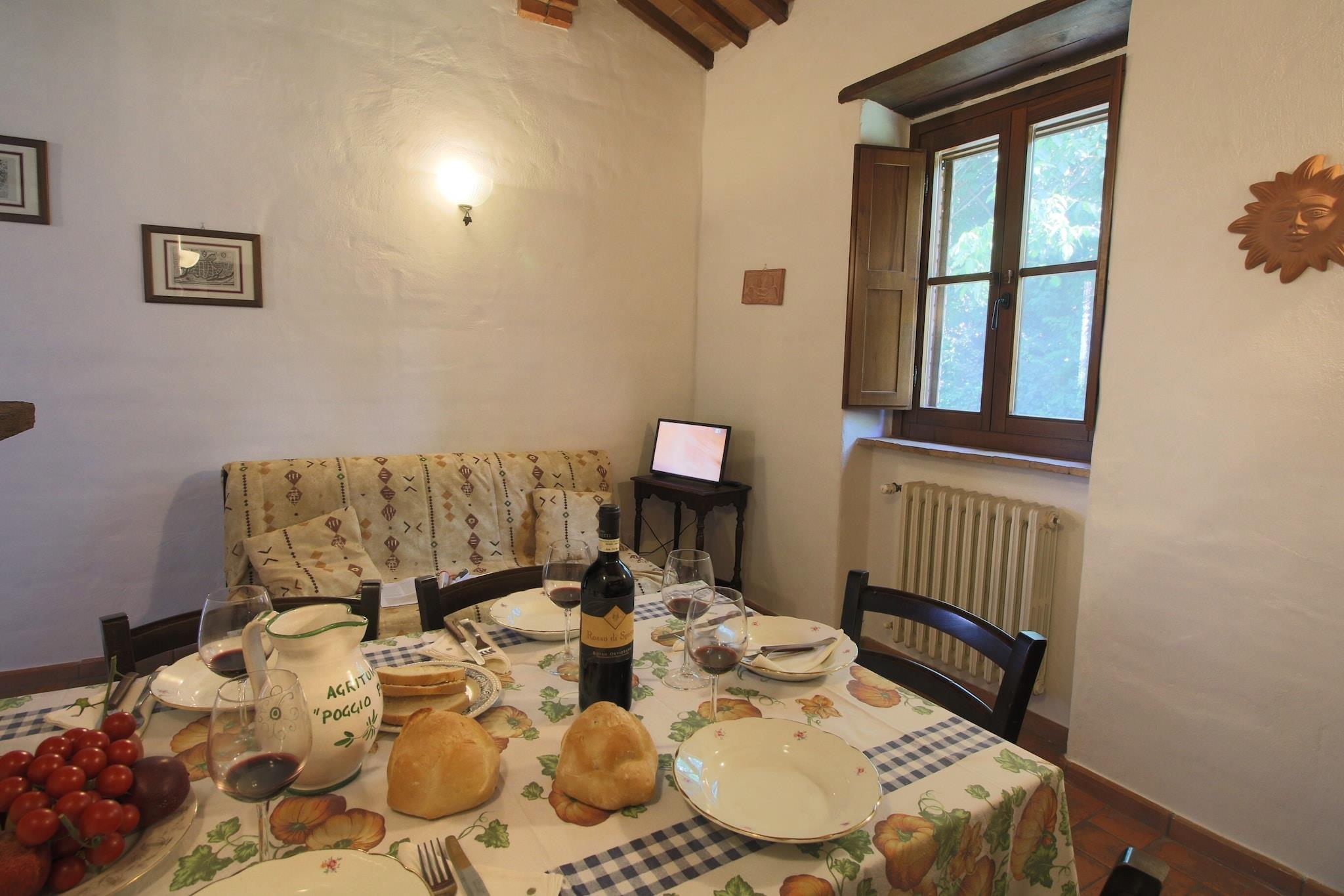 Flygt til det fredelige landskab i Lazio og nyd et afslappende ophold i denne charmerende kæledyrsvenlige bondegård for 5 gæster, beliggende i Località Boschetto, nær Proceno. Beliggende i de bølgende bakker har dette rustikke tilflugtssted en hyggelig stue med pejs og sovesofa, et veludstyret åbent køkken og to komfortable soveværelser, perfekt til familier eller små grupper. Badeværelset er fuldt udstyret, og boligen giver også adgang til en fælles vaskemaskine, en rummelig have og en fælles swimmingpool (åben fra maj til september). Udenfor kan gæsterne slappe af på deres private terrasse, nyde en grill i den fælles have på over 1.000 m² eller slappe af under solen, mens kæledyrene går frit omkring. Naturelskere kan udforske vandrestier gennem det omkringliggende landskab, og hunde vil elske gåture langs søen ved søen Bolsena, kun 25 km væk. Procenos middelalderlige charme ligger kun 1 km derfra. Besøg Castello di Proceno, en fantastisk fæstning, der lejlighedsvis er vært for kulturelle begivenheder. Via Francigena pilgrimsruten løber også gennem området, hvilket gør det perfekt til naturskønne vandreture. Denne bondegård kombinerer ægthed, komfort og nærhed til kulturelle perler - hvilket gør det til det perfekte tilflugtssted på landet for både mennesker og kæledyr.