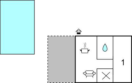 Opholdsstue/køkken 18m2 - 2 Sovepladser. (Sofa, madras eller lignende).
