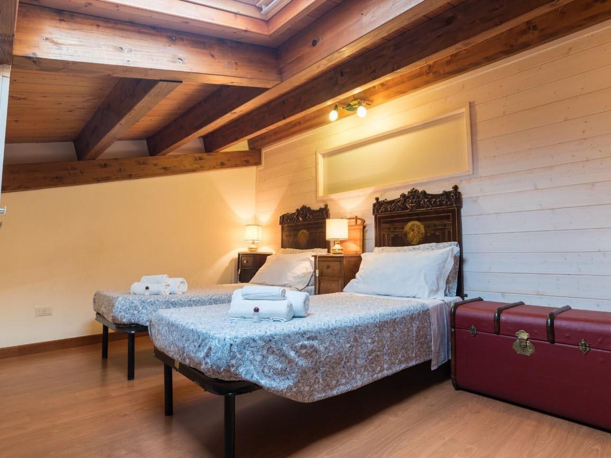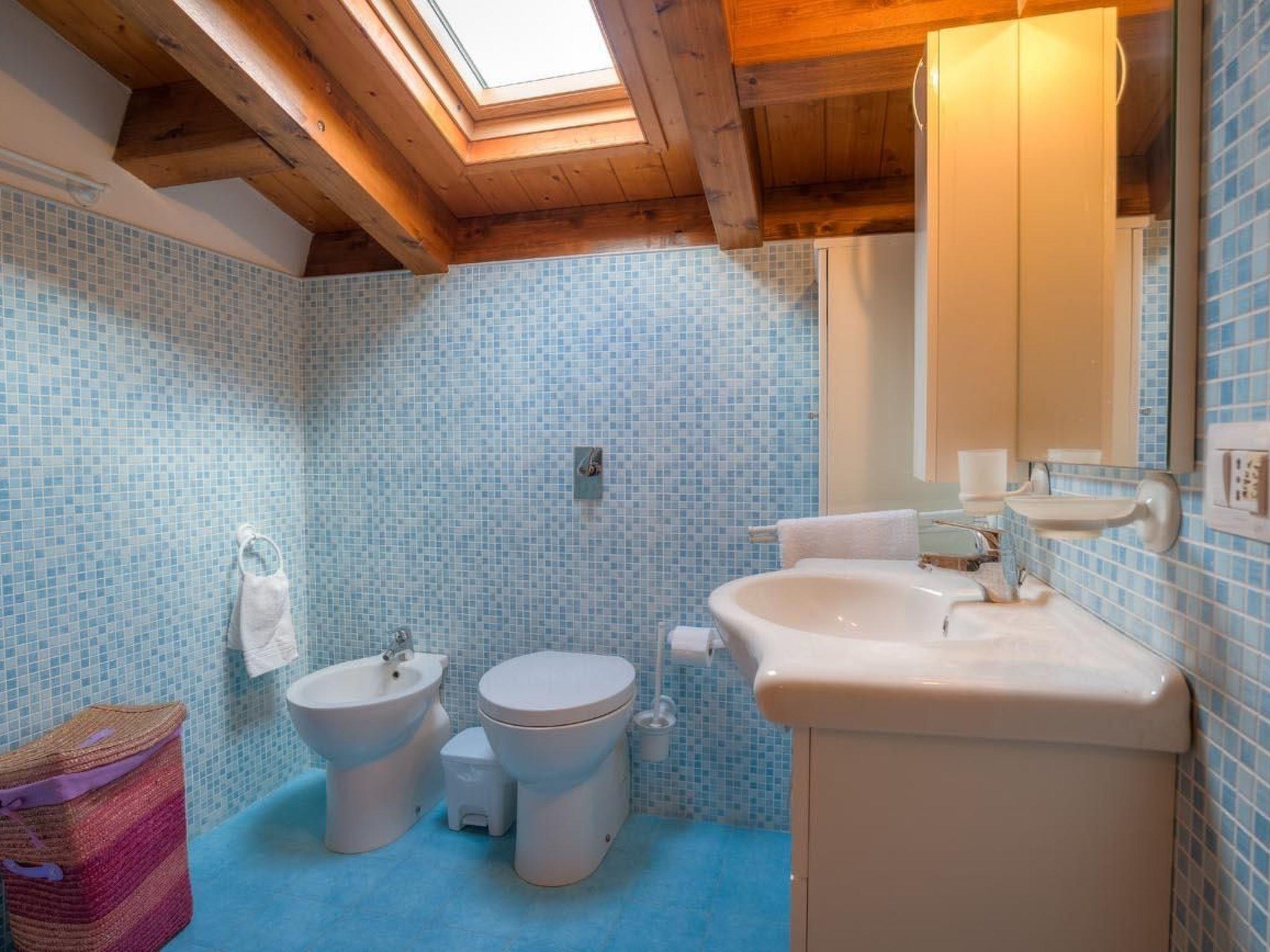 Description Renewed in 2012, the apartment is on the first floor and has two levels. It enjoys a wide furnished terrace, with barbecue. On the first floor there is a big living-room, with sofa bed. A kitchen equipped with electrical oven, fridge, freezer and an ancient wood oven. A bathroom with shower and a laundry corner. The second floor has two rooms: one double bedroom and one twin bedroom, wit possibility to add a third single bed. Another bathroom with shower. The apartment is provided with washing machine, TV and air conditioning in the living room and in the bedrooms.