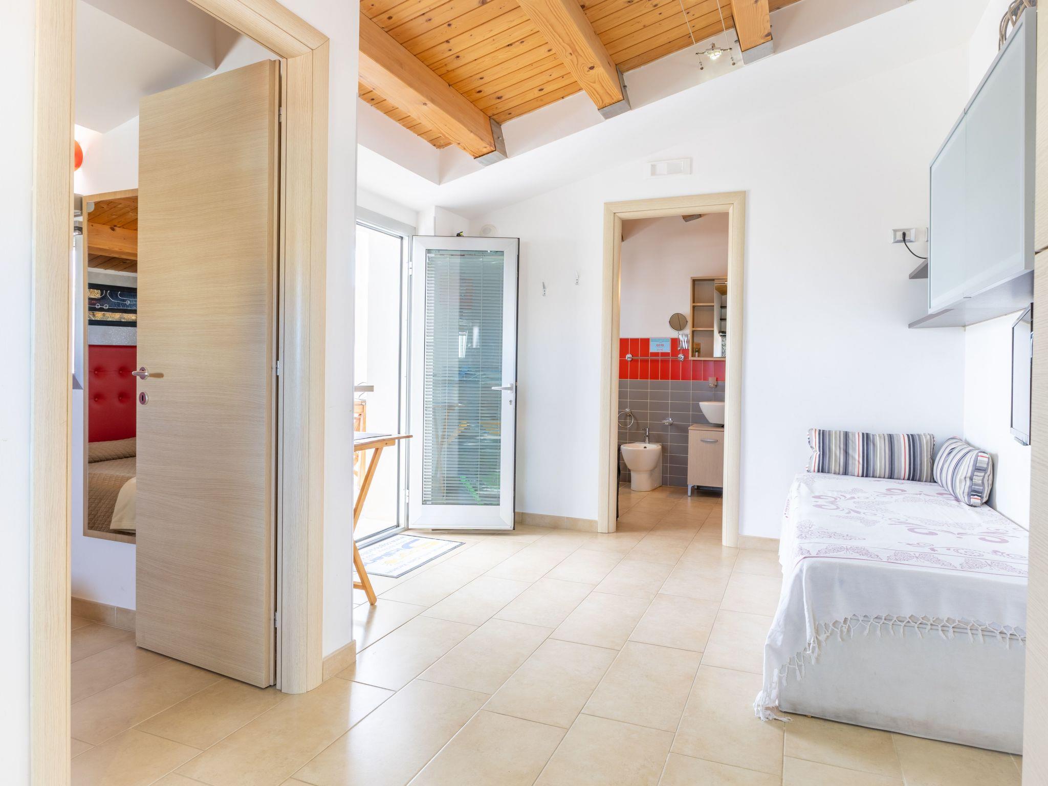 The interior of the flat welcomes guests with an entrance leading into the kitchen-living room, equipped with a sofa bed for one person (80x180 cm) and a kitchenette complete with hob. The bedroom has a comfortable double bed (160x190 cm), and upon request, it is possible to add a cot for children up to three years old. The bathroom has a comfortable shower cubicle and a laundry room with washing machine. To ensure a comfortable stay, the flat is equipped with an LCD TV with digital terrestrial and satellite decoder, Wi-Fi internet connection, air conditioning with heat pump, safe, iron, and towels and bed linen. In the months from May until the end of October, a SKY HOTEL decoder with sports, football and cinema subscription is also provided.
