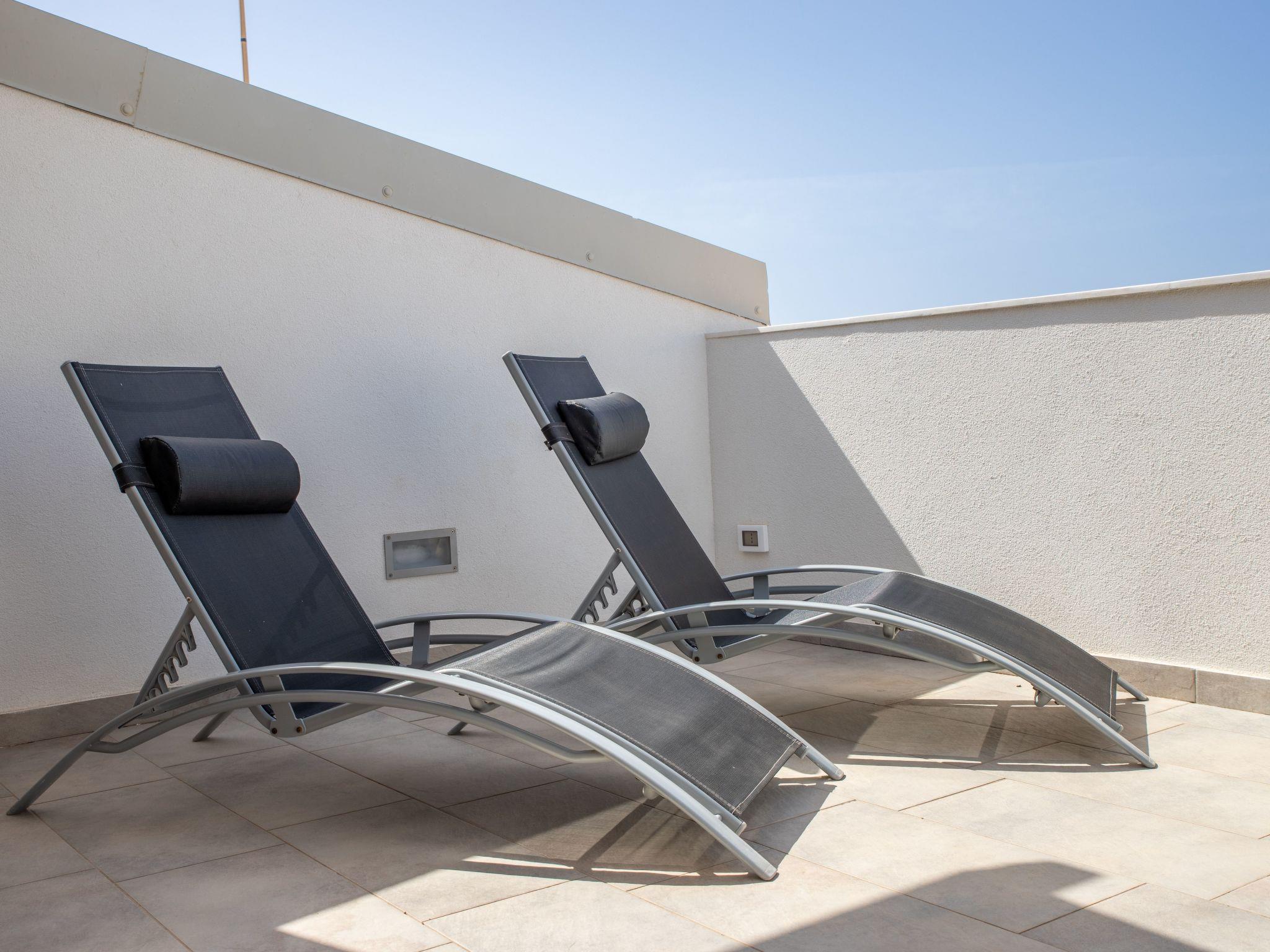 The exterior of the accommodation promises moments of pure relaxation in the sun. The terrace, equipped with a solarium and barbecue, offers the ideal space for al fresco dining or simply enjoying the view and fresh air. This private, well-maintained space is perfect for relaxing after a long day exploring or at the beach.