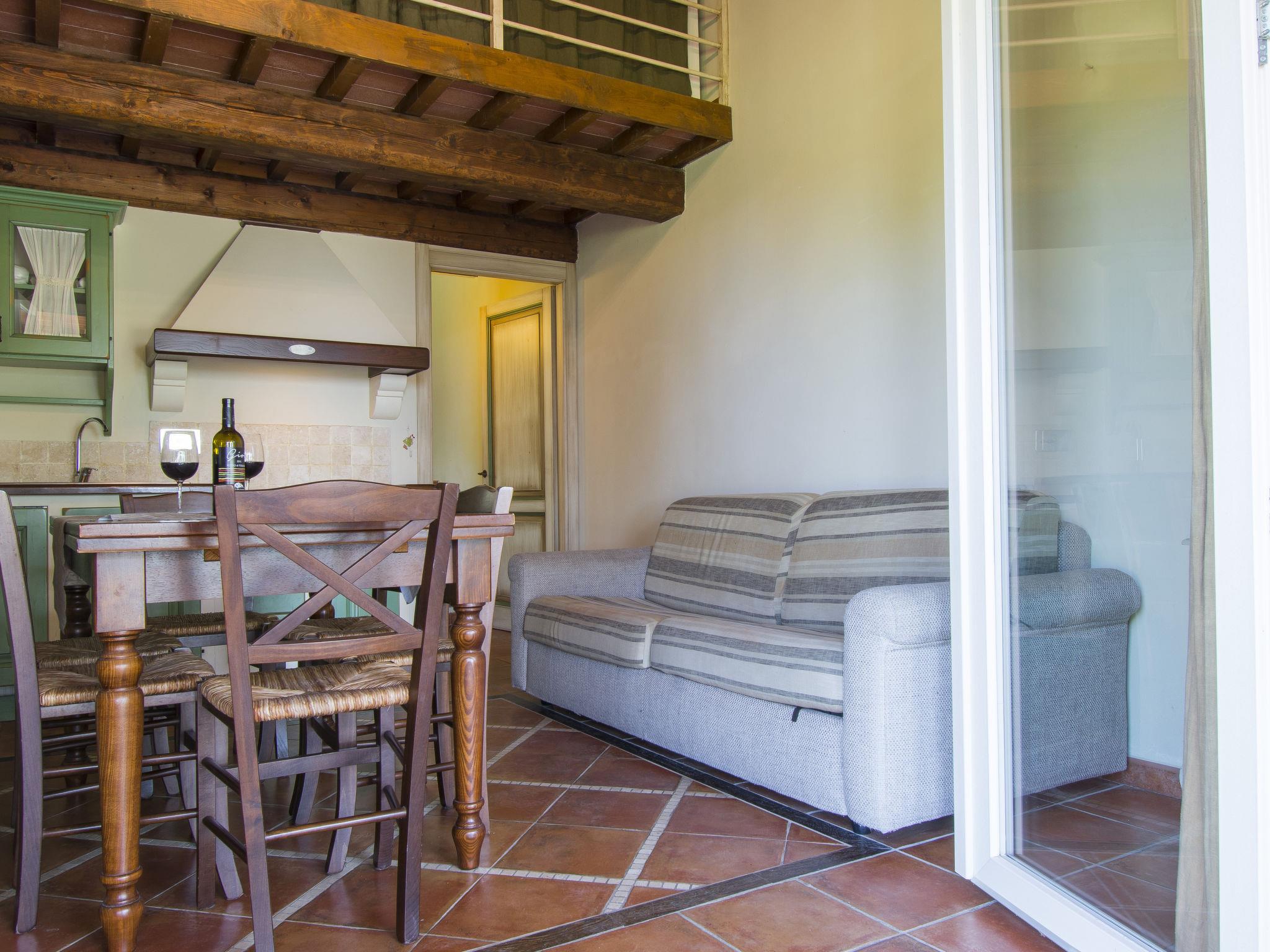 In an elevated position with very beautiful views of the sea and the surrounding hills. Child friendly resort "Il Felciaione", surrounded by trees, meadows and fields. 8 houses in the resort. 55 apartments in the residence. 3.5 km from the centre of Riparbella, in a sunny position on a slope, 100 m from the edge of the forest, 10 km from the sea, 10 km from the beach, in the countryside. For shared use: property 350'000 m2 with plants and trees, meadow, swimming pool (depth 40 - 140 cm, seasonal availability: 15.May. - 25.Sep.). Terrace, garden furniture, children's playground. In the complex: restaurant, bar, bistro, WiFi, washing machine (extra), tumble dryer (for shared use, extra), bicycle rental. Linen change (suppl. charge extra). Towel change (suppl. charge extra). Bread roll service. Parking at the house. E-charging station. Shop 3.5 km, supermarket 10 km, bus stop "V. Del Commercio 2" 2.7 km, sandy beach "Marina di Cecina" 10 km, thermal baths "Calidario" 43 km. Nearby attractions: Volterra 34 km, Pisa 66 km, Lucca 88 km, Firenze 120 km. The photo is just an example. Obligation to wear bathing caps.