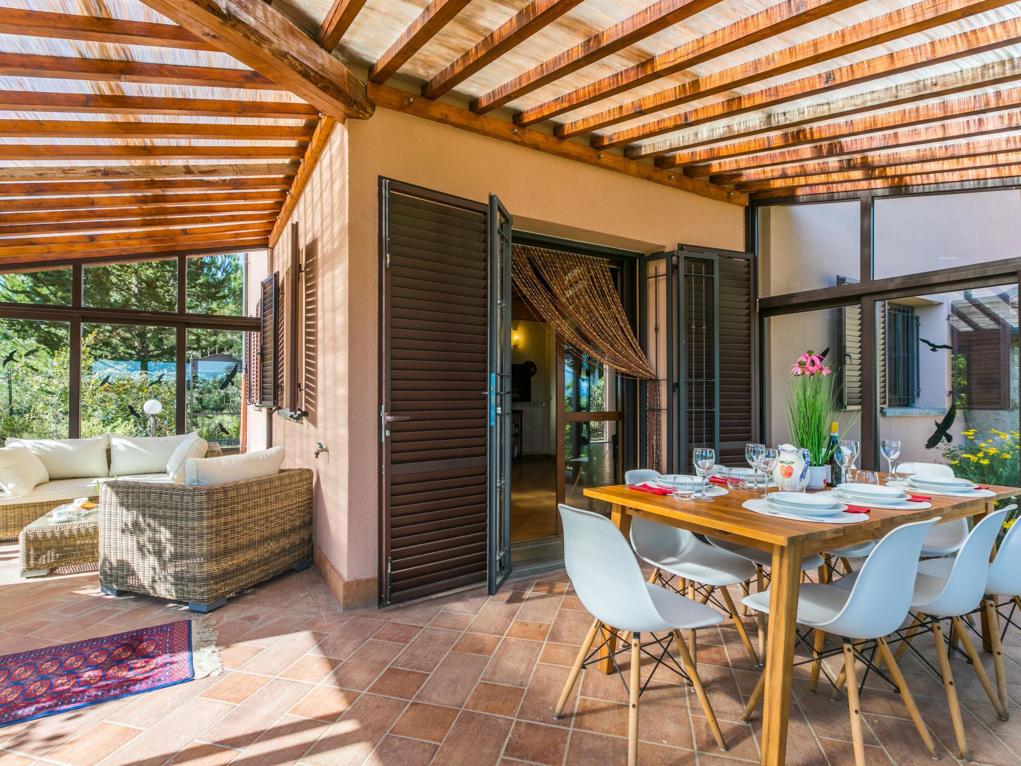 7-room house 170 m2 on 2 levels. Comfortable and beautiful furnishings: large with winter garden with dining table. Exit to the garden. Living room with open-hearth fireplace. Exit to the veranda. Living/sleeping room with 1 double sofabed, 1 sleeping facility, dining table, shower/bidet/WC and TV. Exit to the veranda. 1 room with 2 beds. Open kitchen (oven, dishwasher, Gas stove, 5 gas rings, toaster, kettle, microwave) with dining table. Exit to the garden. Shower/bidet/WC. Electric heating, gas heating, air-conditioning. Upper floor: 1 double bedroom. Exit to the balcony. 1 room with 2 beds. 1 room with 1 bed and 1 pull-out bed. Shower/bidet/WC. Electric heating, gas heating, air-conditioning. Comfortable furnishings in the country house style. Patio. Terrace furniture, barbecue, deck chairs, conservatory, box-room. Panoramic view of the valley and the countryside. Facilities: washing machine, mosquito net, children's high chair, baby cot for up to 2 year olds, hair dryer. Internet (WiFi, free). Parking (roofed). E-charging station. Please note: private entrance, fire extinguisher. IT050030C2HPJAZDEO