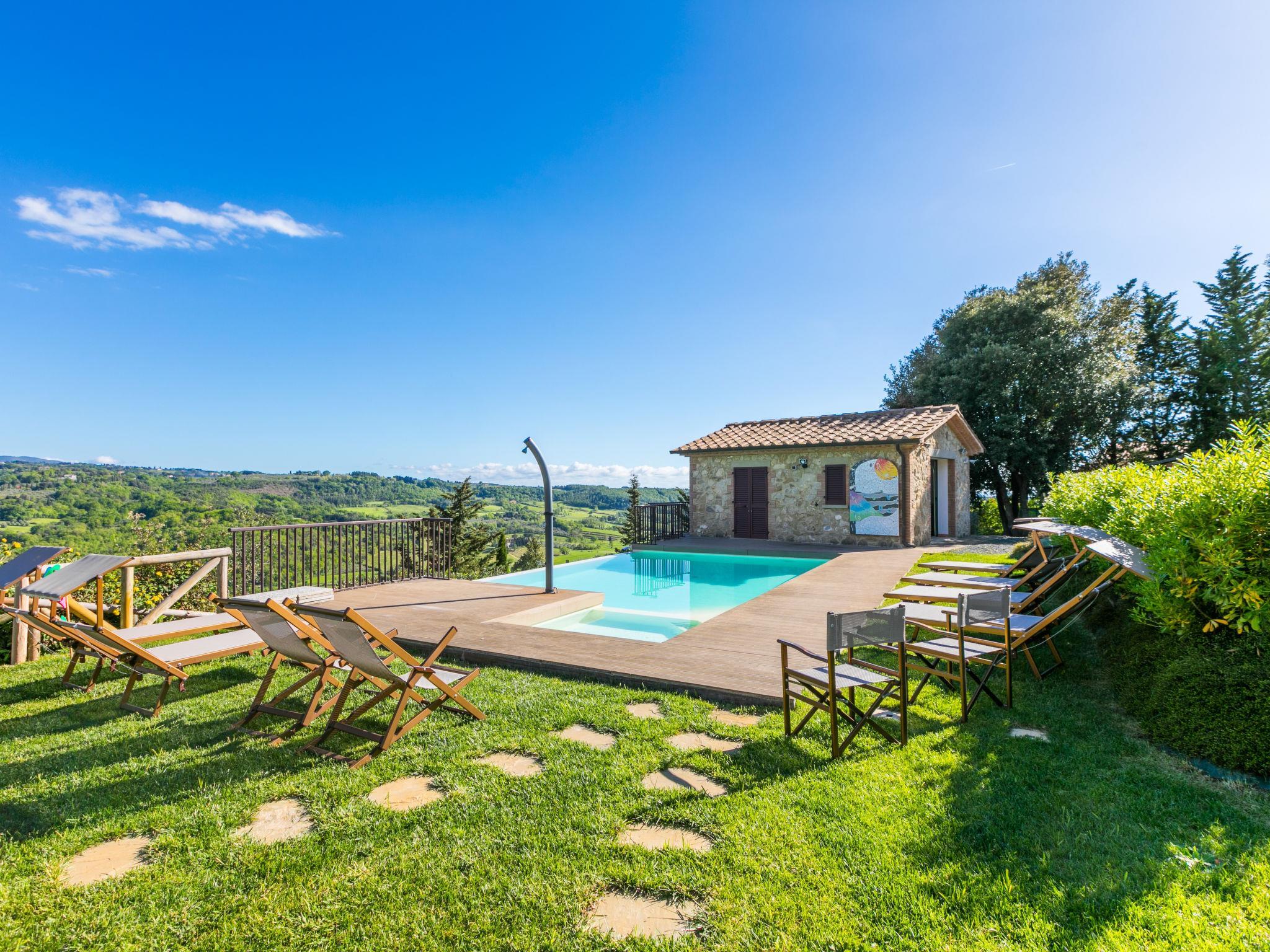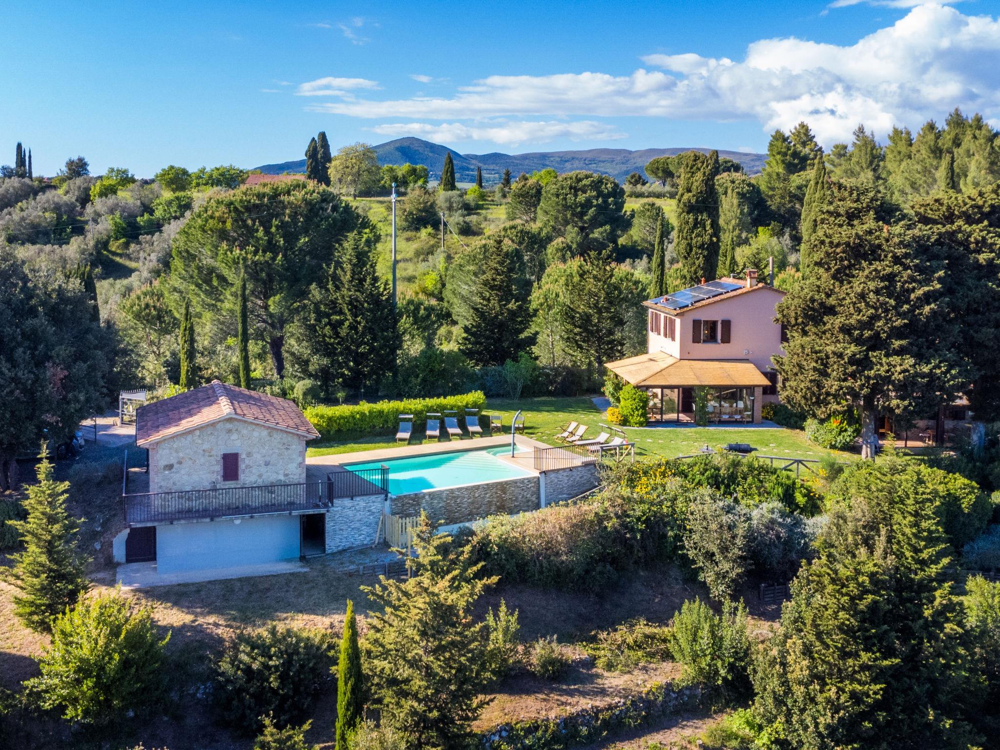 This comfortable house is situated in the idyllic Tuscan countryside, offering views extending far into the Cecina Valley and all the way to the sea. The beautiful pool completes the package. Beautiful, comfortable single-family house "Lilia", 2 storeys. 4 km from the centre of Riparbella, in a quiet, sunny position, 15 km from the sea, 15 km from the beach. Private: property 1 ha (fenced), garden with lawn and wildlife garden, lawn for sunbathing, swimming pool (4 x 8 m, depth 140 - 140 cm, seasonal availability: 01.May. - 15.Oct.) with shutter cover. Outdoor shower, pool maintenance by the owner/gardener. Linen change (suppl. charge extra). Towel change (suppl. charge extra). Motor access (700 m via unmade road). Roofed, parking (for 3 cars). E-charging station. Bus stop 4 km. The owner does not accept any youth groups.