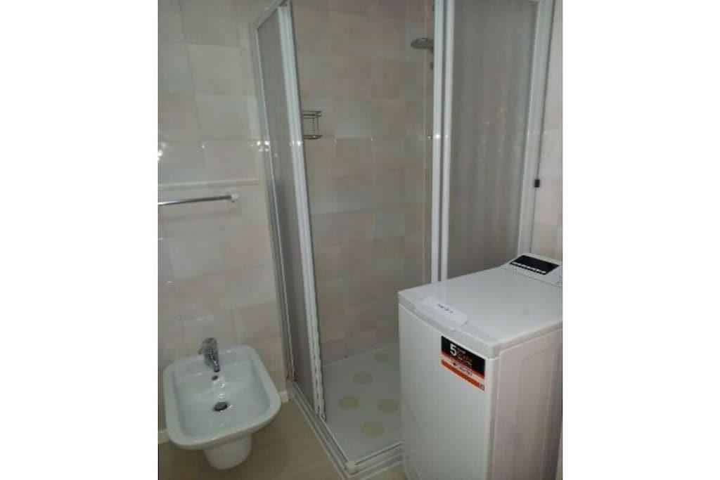 På 1. etage: (badeværelse(, toilet, bruser, håndvask, bidet)) , , , , , Stue(enkeltsovesofa, Fjernsyn), spisestue(Fjernsyn, spisebord), åbent køkken(kakkelovn, komfur, ovn, køleskab, ), soveværelse(, , dobbeltseng), soveværelse(, enkeltseng, enkeltseng), Internetadgang, vaskemaskine, balkon(Strand, balkon), varme, parkering, trappegitter, strygebræt, strygejern, tørreskab