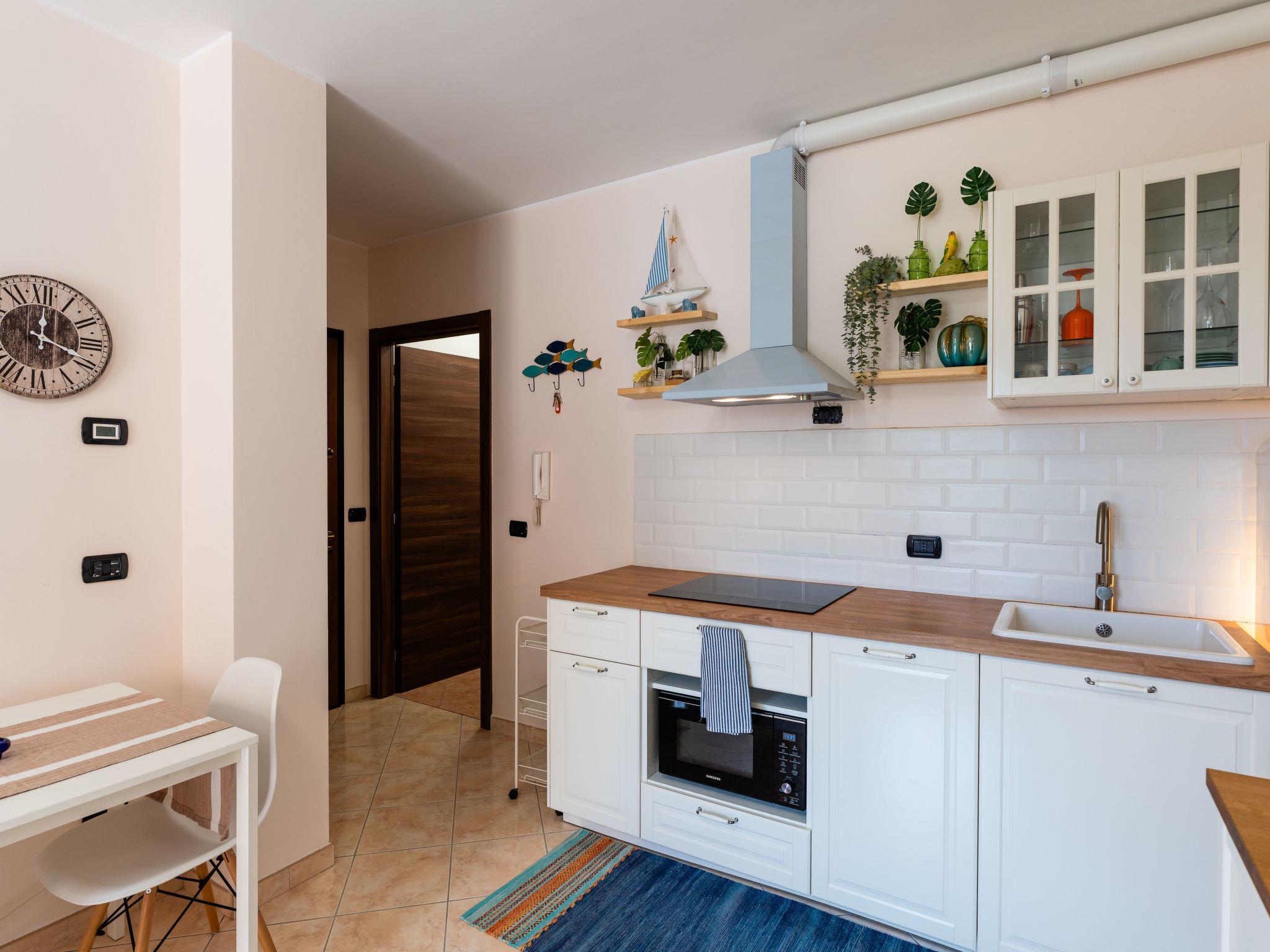 "Piccolo Tesoro", 1-room apartment 30 m2, on the ground floor. Very tasteful and cosy furnishings: living/dining room with 1 bed (140 cm, length 200 cm), air conditioning. Exit to the balcony. Kitchenette (dishwasher, 4 induction hot plates, toaster, kettle, microwave). Shower/bidet/WC. Gas heating, air-conditioning, forced-air heating. Heating available only from 01.11. to 15.04. Small balcony. Balcony furniture. Side view of the sea. Facilities: washing machine, baby cot for up to 2 year olds, hair dryer. Internet (WiFi, free). Garage at the house. Please note: non-smoking house. Maximum 1 pet/ dog allowed. Smoke alarm, fire extinguisher. IT008050B4WKQK3B34