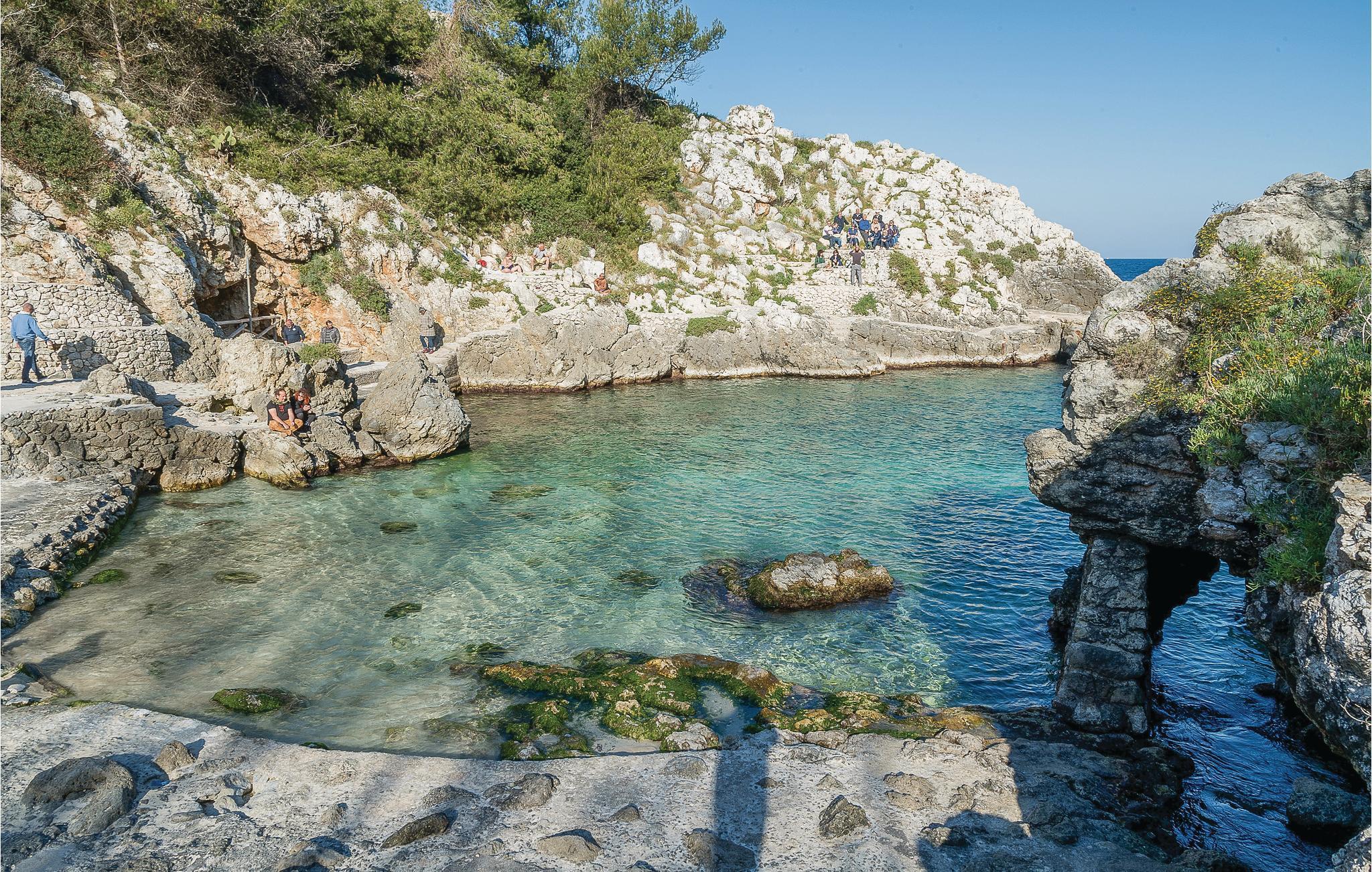 Marina di Marittima er en kystby, der strækker sig over 5 km og byder på fantastiske strande ud til frodige skove med fantastiske klipper, der danner et hjørne af paradis omgivet af middelhavsnatur. I nærheden ligger den velkendte Castro Marina, berømt for sin turisthavn og Acquaviva-bugten, som er opkaldt efter de utallige farvande, der springer direkte ud i det krystalklare hav. Et must-see er Zinzulusa-grotten, en unik attraktion året rundt takket være dens drypsten, stalagmitter og maleriske karstkreationer. I er også kun få kilometer fra Santa Cesarea Terme, et af de mest berømte steder i Salento-regionen, med termiske faciliteter til svovlbehandlinger. Nogle afstande til jeres udflugter: Otranto (22 km), Santa Maria di Leuca (21 km) med sine smukke villaer fra det 19. århundrede, Gallipoli (46 km). Fra Marittima starter en rute langs kysten fra Otranto til Leuca, som er en af ??de mest attraktive ruter i Francigene på Salento-kysten. Det omkringliggende område er også det ideelle sted for vandreture, samt mountainbiking mellem havet, olivenlundene og appelsinlundene.