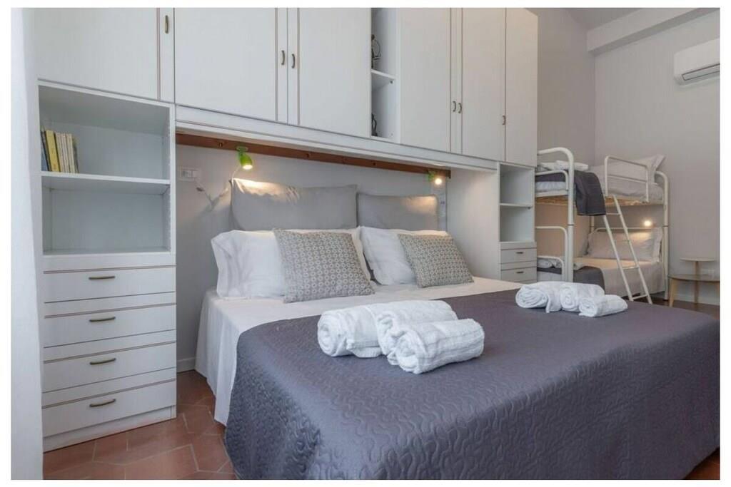 Sie bietet Platz für bis zu 14 Personen, hat 5 Schlafzimmer und 3 Badezimmer. Die Villa degli Archi liegt nur wenige Kilometer von Sant'Elpidio a Mare und den Badeorten der Küste der Marken entfernt. Eingebettet im Grünen, ist das Anwesen von einem eingezäunten Garten mit Grill und Privatparkplatz für 5 Autos umgeben. Im Garten befindet sich ein hölzerner Pavillon mit Klimaanlage und einem Esstisch, ideal für Mahlzeiten im Freien mit Freunden. Im Außenbereich gibt es einige Sitzecken, Tische, Stühle und einen schönen Pool (4 x 8 m, Tiefe 1,20 m), der von Mai bis September geöffnet und mit Liegestühlen ausgestattet ist. Vom Pool aus hat man einen atemberaubenden Blick auf das adriatische Meer und die sanften Hügel der Marken. Die Villa wurde vor kurzem nach Kriterien der ökologischen Nachhaltigkeit renoviert und ist auf einer Ebene im Erdgeschoss untergebracht. Sie kann bis zu 14 Personen beherbergen, hat 5 Schlafzimmer und 3 Badezimmer. Internet Wifi ist inbegriffen. Alle Zimmer sind klimatisiert. Alle Fenster sind mit Moskitonetzen ausgestattet. Haustiere sind erlaubt. Der Eigentümer der Villa wohnt ca. 20 Minuten entfernt und hilft den Gästen gerne, wenn sie während ihres Aufenthalts etwas brauchen. Sie werden von einem großen und hellen, offenen Wohnbereich empfangen, der ausgestattet ist mit: Sofas, Klavier, Esstisch, Kamin, Fernseher, 3 großen französischen Schiebetüren (mit direktem Zugang zum Garten) und einer voll ausgestatteten Küche (mit Backofen, Kühlschrank, Mikrowelle und Geschirrspüler). Das Wohnzimmer hat ein Zwischengeschoss, in dem sich ein Sofa mit Leseecke, einige Sessel und ein Spieltisch befinden. Der Schlafbereich besteht aus 5 geräumigen Schlafzimmern, die wie folgt aufgeteilt sind: 2 Zweibettzimmer; 2 Zweibettzimmer mit je einem Schlafsofa; 1 Vierbettzimmer (ein Doppelbett + 1 Etagenbett) mit eigenem Bad mit Dusche. Es gibt auch 2 weitere Badezimmer mit Dusche.