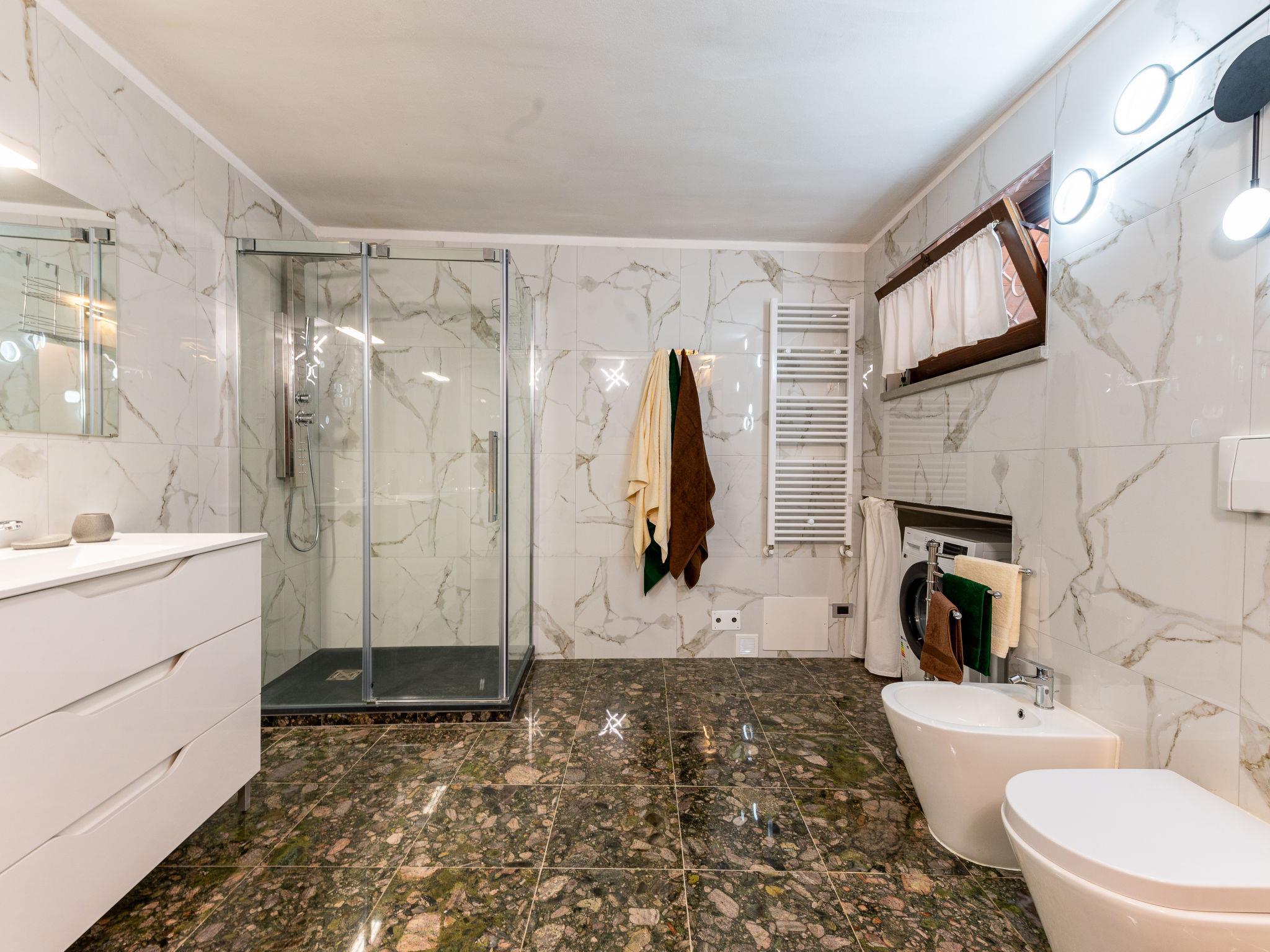 5-room house 140 m2 on 3 levels. Object suitable for 5 adults + 1 child. Spacious, fully renovated in 2024, comfortable and cosy furnishings: living/dining room with TV and air conditioning. Exit to the terrace. 1 children's room with 1 bed and 1 pull-out bed. Exit to the terrace. On the lower ground floor: large kitchen-/living room (oven, dishwasher, 4 induction hot plates, kettle, electric coffee machine) with dining table. Shower/bidet/WC, hydro massage shower. Upper floor: 1 room with 1 double bed (160 cm), air conditioning. 1 room, without wardrobe with 2 beds and air conditioning. Shower/bidet/WC. Gas heating. Heating available only from 15.10. to 15.04. Large terrace partly roofed, patio, lawn. Terrace furniture, barbecue, deck chairs. Marvellous panoramic view of the countryside and the ocean. Facilities: washing machine, mosquito net, children's high chair. Internet (WiFi, free). Parking (fenced). Please note: maximum 2 pets/ dogs allowed. Private entrance, smoke alarm, fire extinguisher. IT053023C2WM8OZMV5