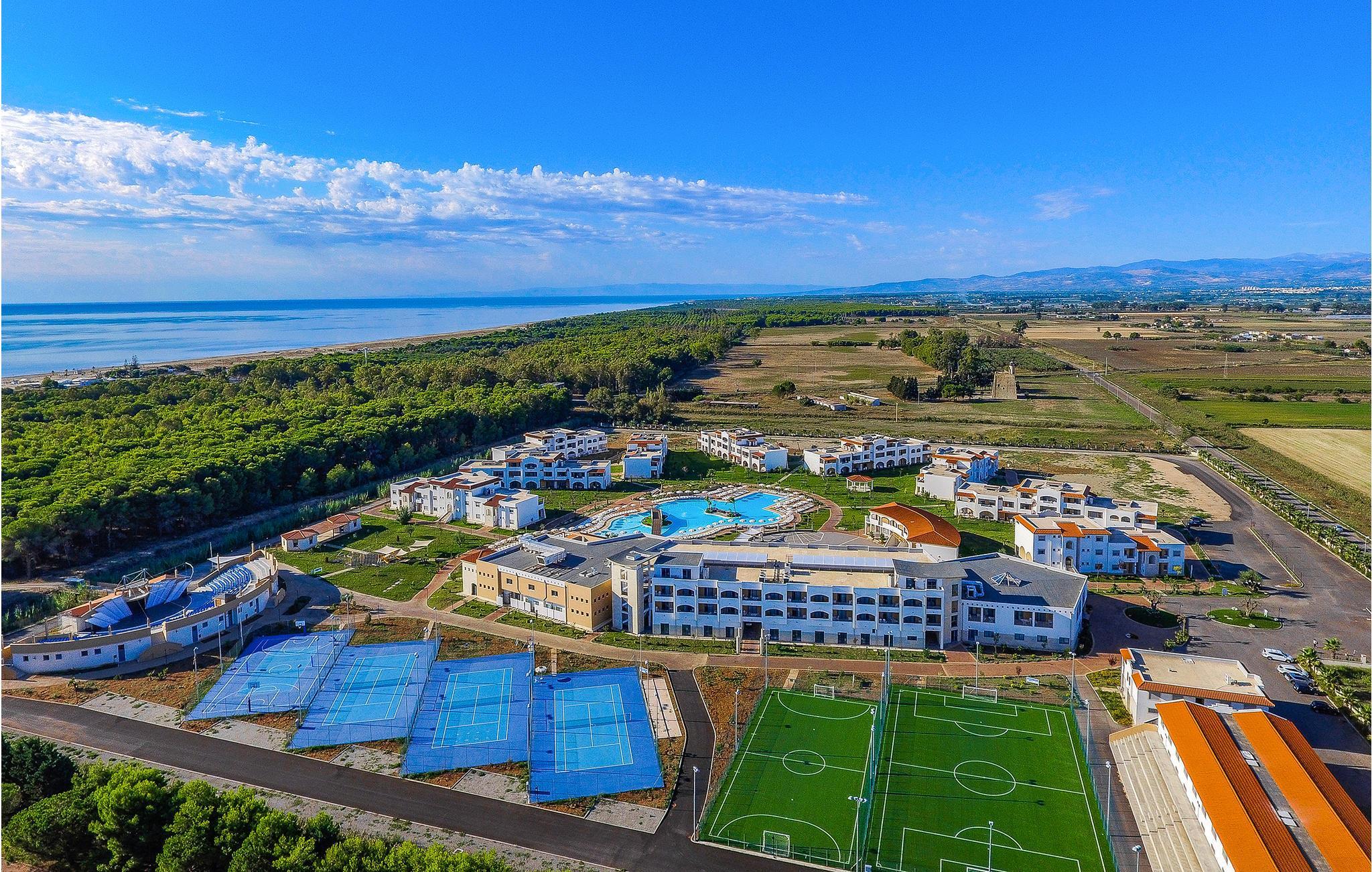 Velkommen til et feriekompleks fuld af aktivitetsmuligheder. Her er pool, udendørsteater, wellnessområder og kun 350 meter til den gyldne sandstrand og det azurblå hav.