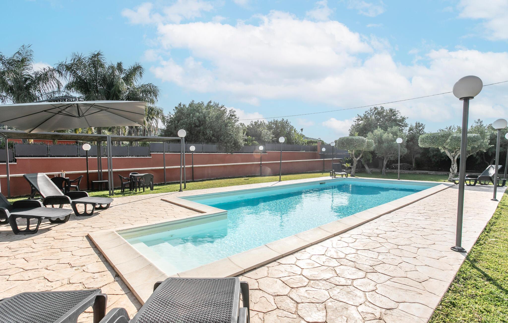 Tilbring behagelige dage i dette indbydende feriehus med stor pool og idyllisk have.