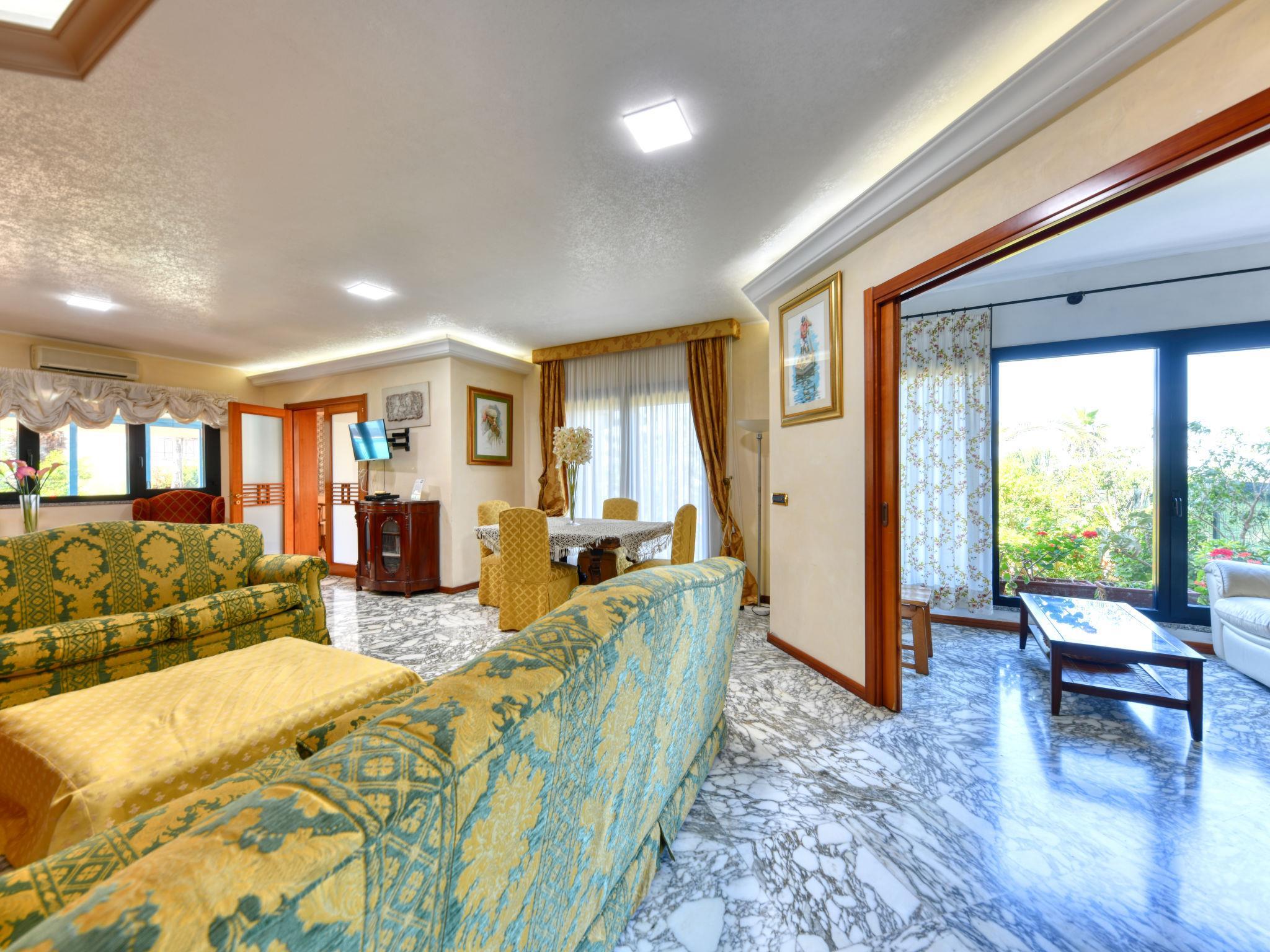 Large villa "Vella", surrounded by meadows. In the resort Terrauzza, 10 km from the centre of Siracusa, in a quiet, sunny position, 700 m from the sea, 700 m from the beach. Private: property 3'000 m2 (fenced), large, well-kept garden 2'100 m2 with lawn and trees, swimming pool (80 m2, depth 120 - 150 cm, seasonal availability: 01.Apr. - 31.Oct.). Outdoor shower, barbecue. In the house: fitness room. Parking. Bus stop 200 m, railway station "Siracusa" 9 km, sandy beach "Arenella" 5.5 km, rocky beach "Terrauzza" 700 m. Nearby attractions: Avola 23 km, Noto 32 km, Marzamemi 50 km, Ispica 53 km, Isola delle Correnti Punto Sud Sicilia 58 km, Modica 68 km. Well-known ski regions can easily be reached: Punto Partenze Sud Escursione Etna 105 m. Well-known lakes can easily be reached: Riserva Naturale Laghetti del Cassibile 34 km. Hiking paths: Riserva Naturale Faunistica di Vendicari 40 km. Please note: car recommended. The owner lives in the same residence.