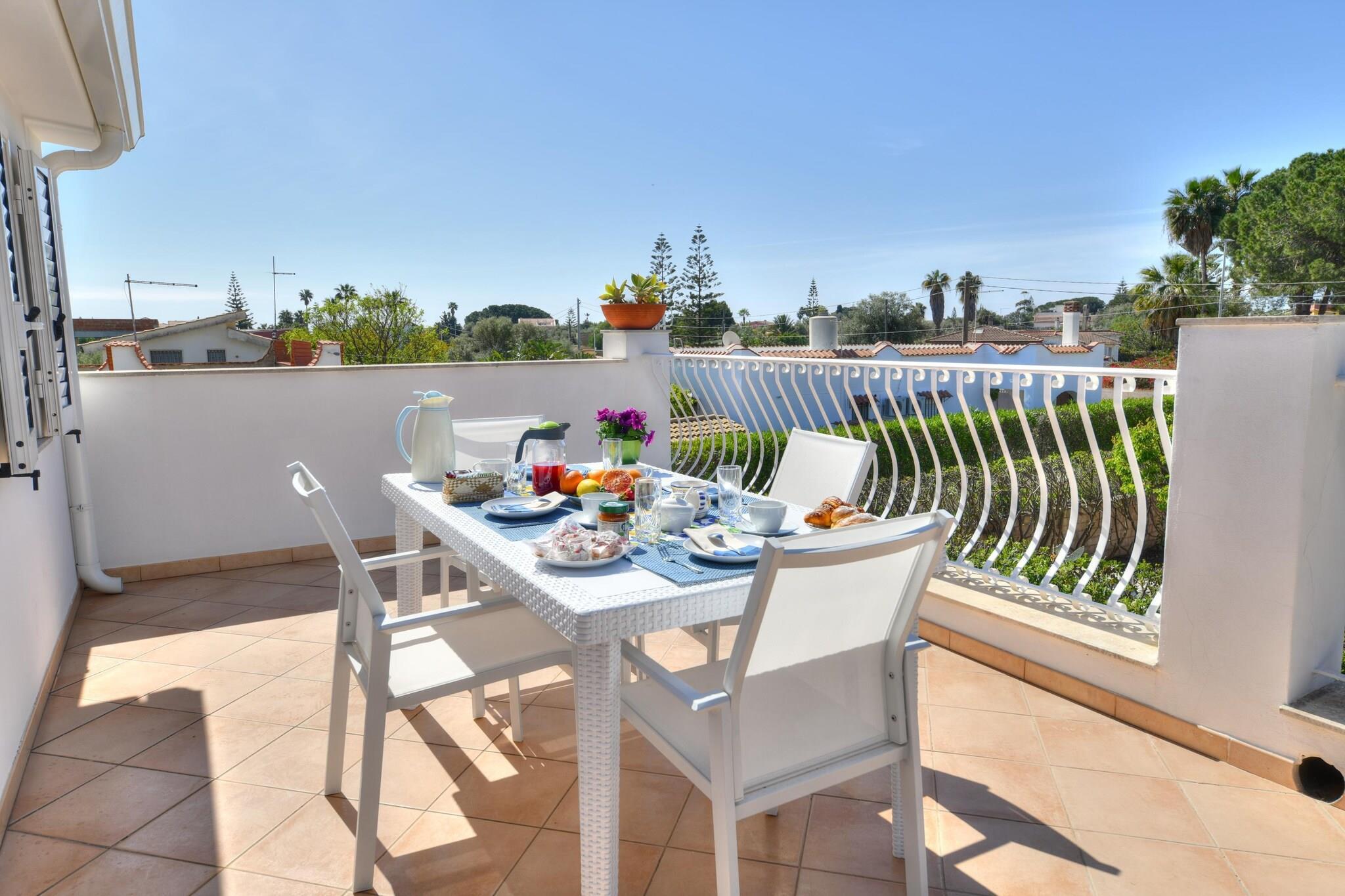 På 1. etage: (Køkken(enkeltsovesofa, Fjernsyn, spisebord, kogeplade(Komfur med fire kogeplader, gas), kaffemaskine(kopper), ovn, mikrobølgeovn, køle-fryseskab), soveværelse(dobbeltseng, balkon, klimaanlæg), soveværelse(enkeltseng, dobbeltseng, balkon, klimaanlæg), badeværelse(badekar med bruser, toilet, bidet, vaskemaskine), terrasse, havemøbler, Parasol) bruser(udendørs), have, solstole, swimmingpool(deles med ejer, opened from May upto and including Sep)