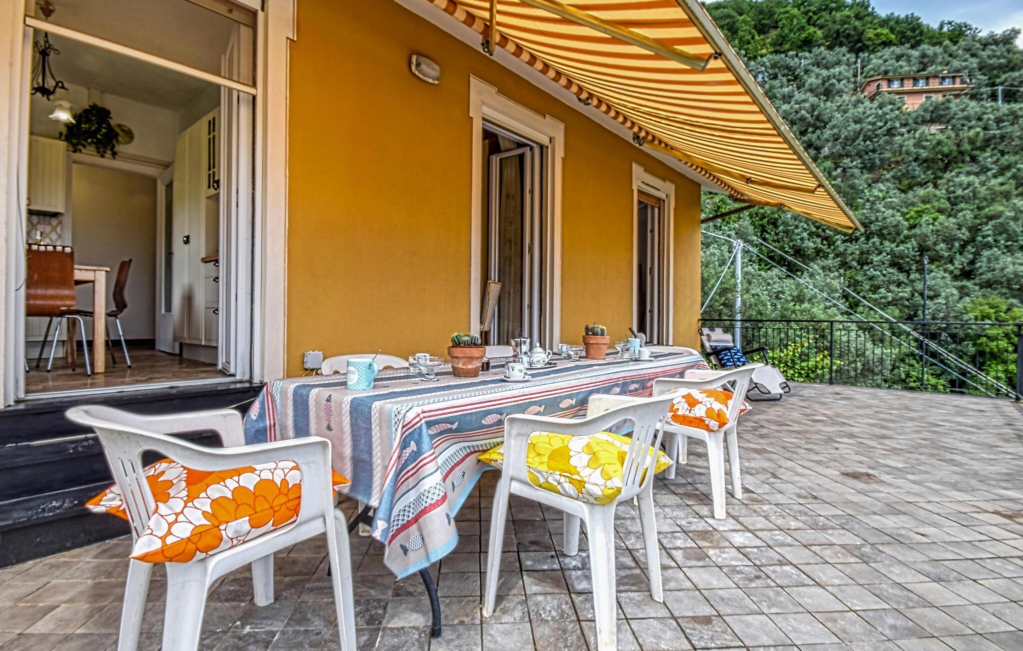 I dette charmerende feriehus i Sori vil I nyde en betagende udsigt over havet og de grønne bakker på den liguriske kyst.