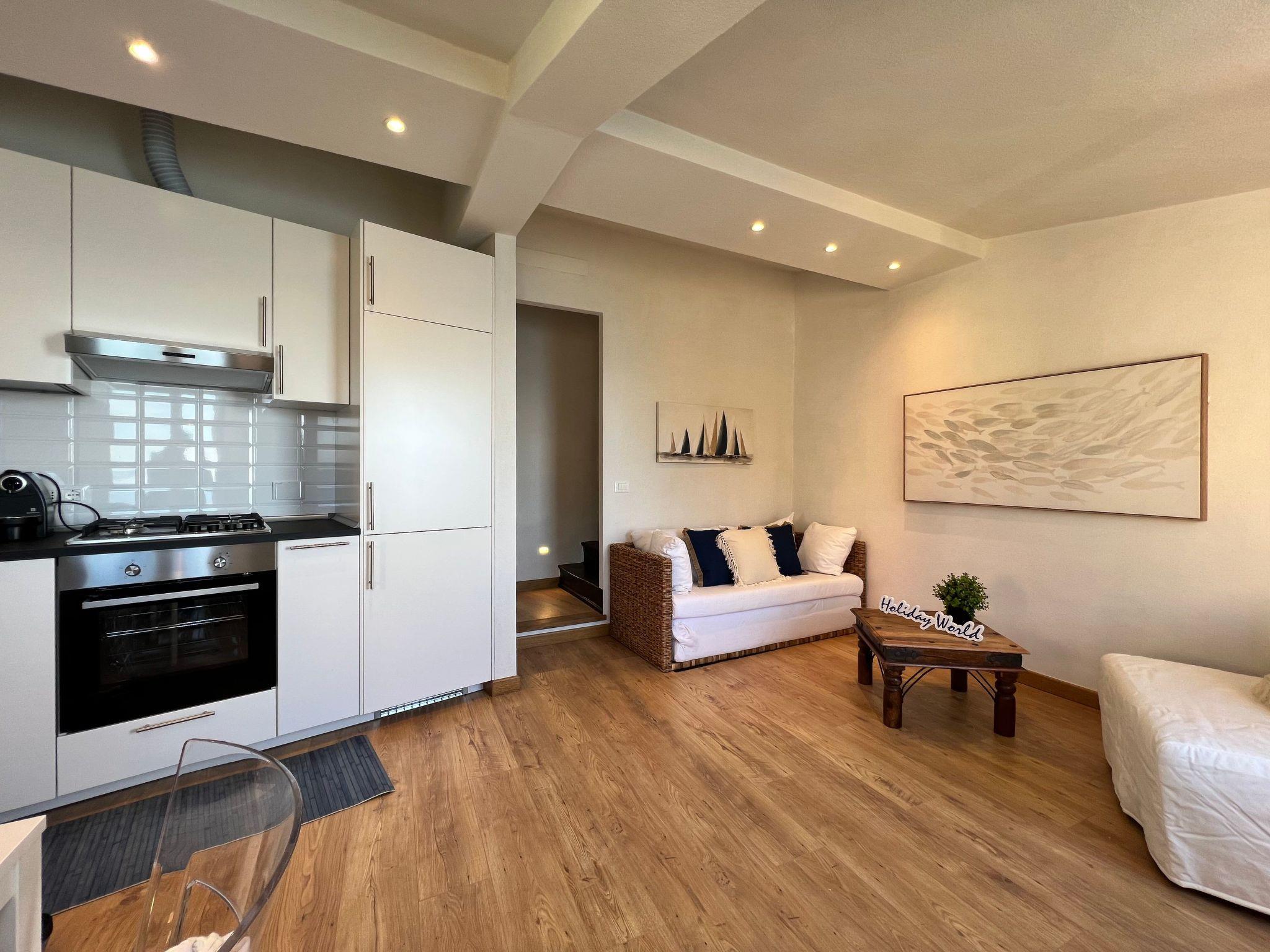 The interior of this flat is designed to offer maximum comfort and functionality. The presence of a washing machine for exclusive use guarantees the convenience of feeling at home, while the fully-equipped gas kitchen, complete with electric coffee machine, dishwasher and electric kettle, invites guests to try their hand at preparing typical dishes or simply enjoy a relaxing breakfast. The management of the interior space makes this flat a perfect choice for couples or small groups of up to 4 people, eager to enjoy an authentic Riviera experience.