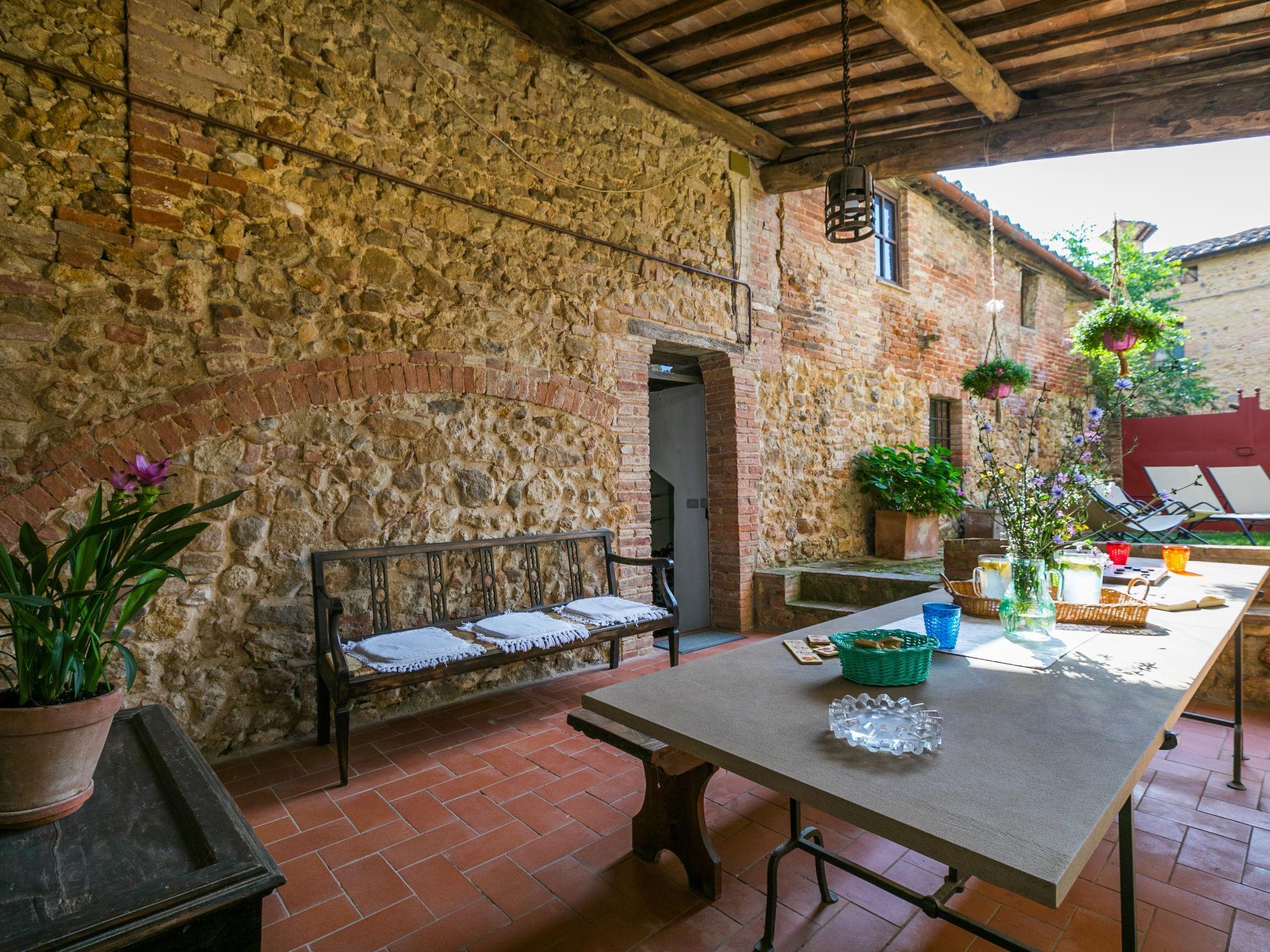 Stigliano 2 km from Rosia: Very old, historical residence "La Torre", 5 storeys, from the 12nd century, surrounded by trees and meadows. 3 apartments in the property. Above Stigliano 1 km from the centre of Rosia, 5 km from the centre of Sovicille, 20 km from the centre of Siena, in a sunny, elevated position, 100 m from the edge of the forest, 70 km from the sea, 4.5 km from the river. For shared use: property 1'000 m2 (fenced), terraced garden trees. Barbecue. In the house: lounge with TV, washing machine (for shared use). Parking at the house on the premises. Shop 2 km, grocery 2 km, supermarket 2 km, restaurant 300 m, bakery 2 km, bus stop "Rosia" 2 km, railway station "Siena" 20 km, sandy beach "Follonica" 70 km, thermal baths "Terme di Petriolo" 21 km. Golf course (18 hole) 7.5 km. Nearby attractions: Montalcino 45 km, San Gimignano 46 km, Massa Marittima 52 km, Pienza 62 km, Firenze 87 km. Please note: no lift. Baby equipment (included). Owner lives in separate semi-detached house. All houses/apartments are individually designed/furnished.