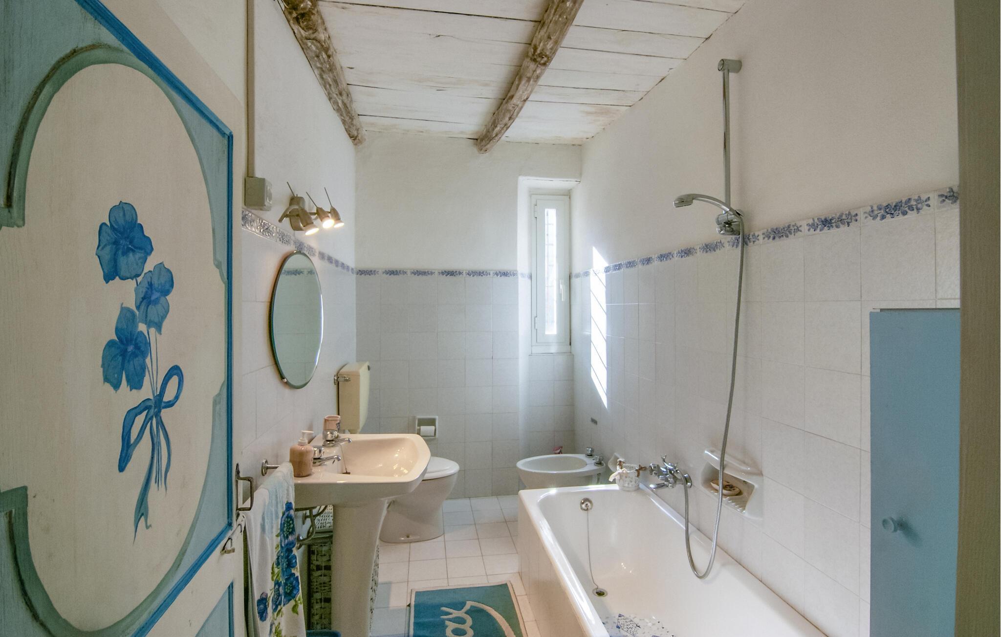 Badeværelse (nr. 1) - WC. Varmt og koldt vand. Håndbruser, badekar og bruser
