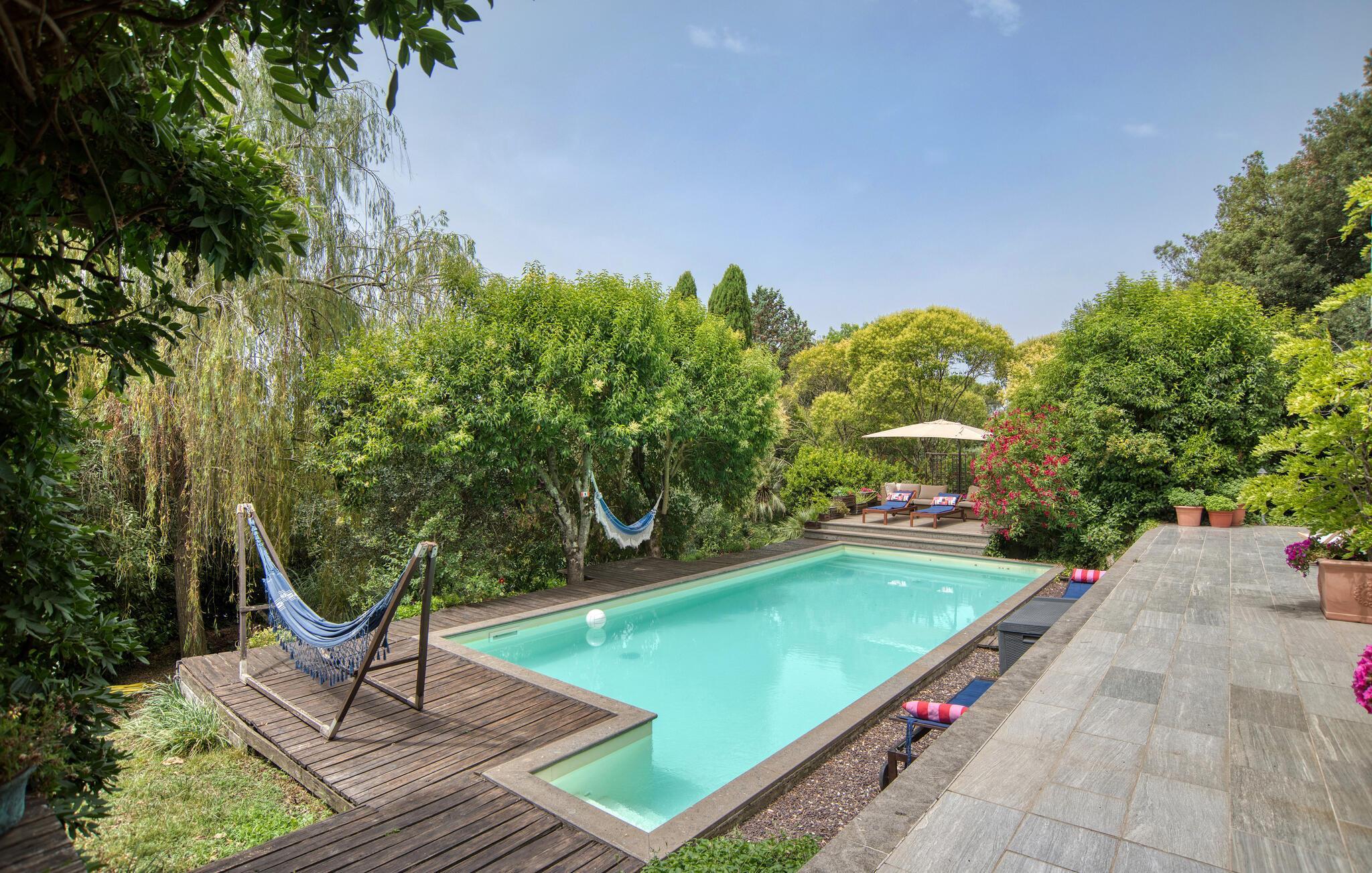 Haven er særdeles smuk med talrige buske, træer og farverige blomster, der skaber et vidunderligt udendørsområde, som suppleres af flere terrasser og en pool. Her kan I svømme nogle baner, lægge jer i hængekøjen eller nyd udsigten over landskabet fra balkonen.