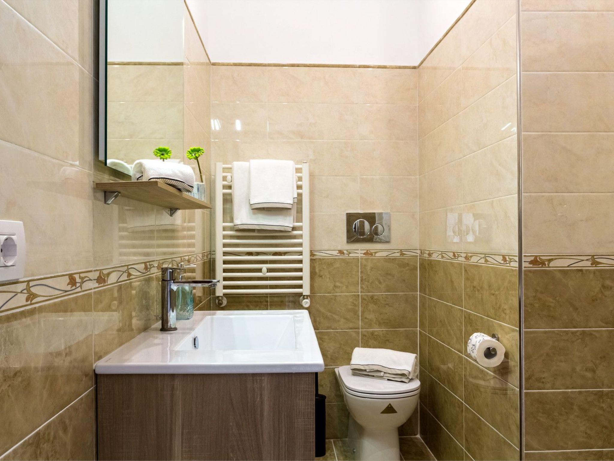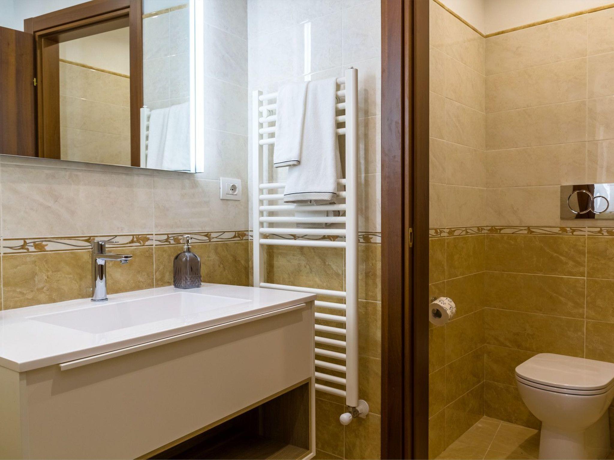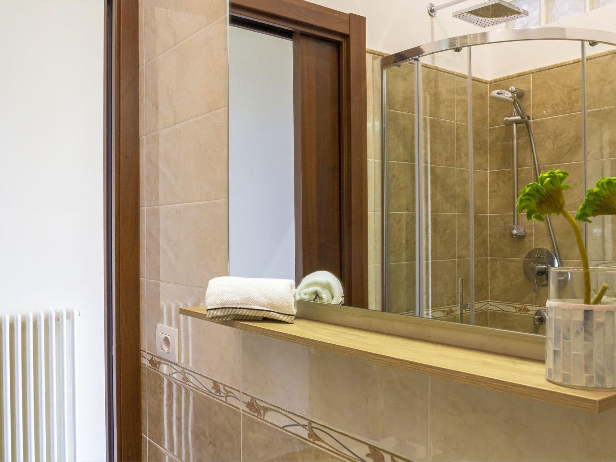 The interior of the house is designed to offer you maximum comfort during your stay. The flat is spread over two levels, with four cosy bedrooms, each designed to provide privacy and relaxation for its guests. Two of these have en-suite bathrooms, while the other two share a bathroom located on the floor. On the second level, you will find a large living area with an American-style kitchen, ideal for convivial moments, crowned by a charming roof with exposed wooden beams, which adds a touch of warmth to the environment. To complete the interior comforts, there is a private laundry room with washing machine, facilitating the needs of each guest.