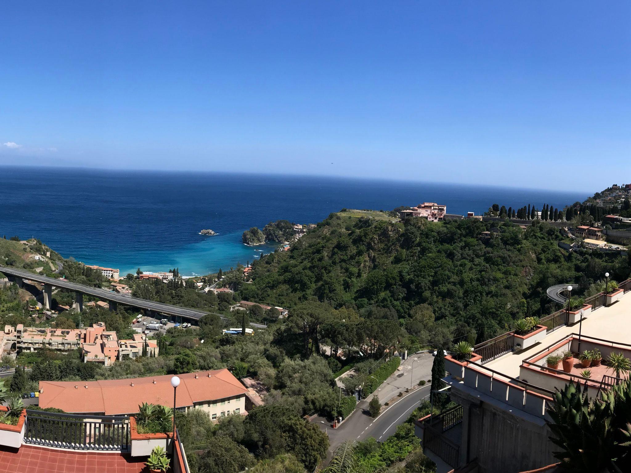 It is an elegant and bright two-room flat with an enchanting 360-degree view of the bay of Mazzaró, Capo S. Alessio, the Ionian coast with the picturesque medieval village of Forza D'Agrò, the Calabrian coast, the Peloritani Mountains and the blue Ionian Sea. The flat is located in a quiet residential area in a position away from the hustle and bustle of the city centre, which can be reached in 10 minutes on foot. This delightful flat will suit you whether you decide to spend only a few days there or stay longer to enjoy the beauty and entertainment that Taormina has to offer. You will find everything you need to feel at home!