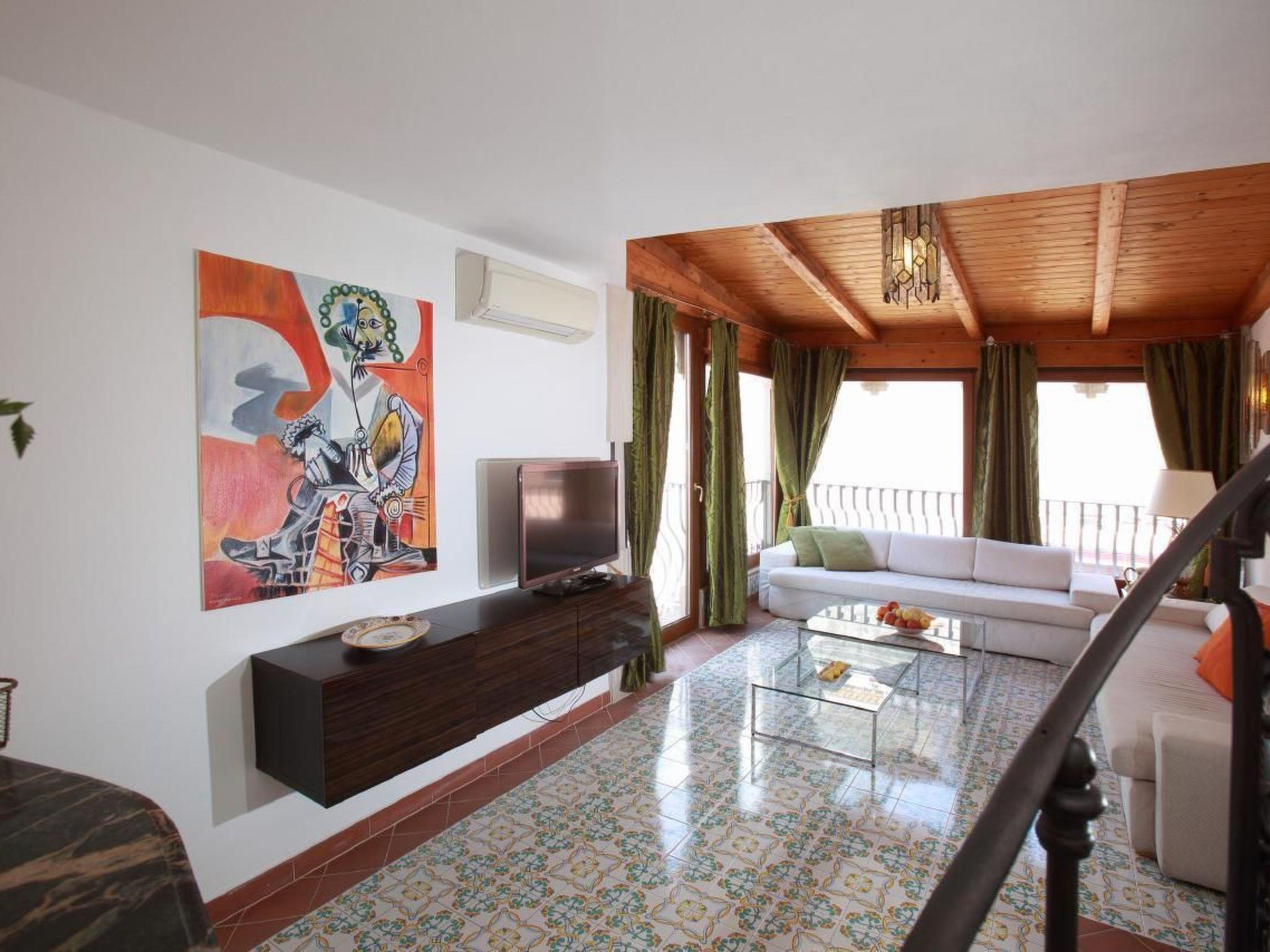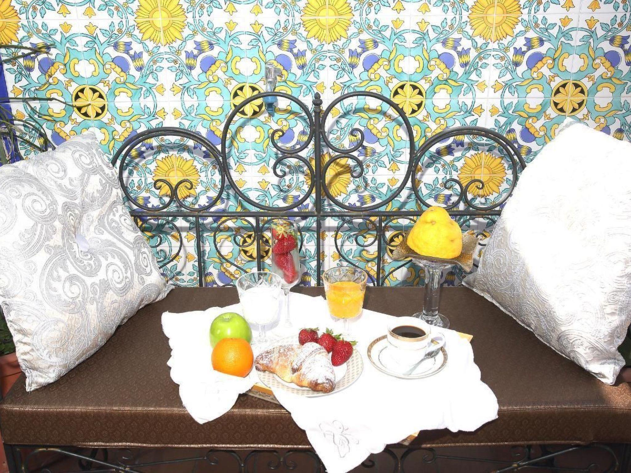 The townhouse is spread over 4 floors and has a small roof terrace with a unique view of the Etna volcano, the Teatro Grecco and picturesque Taormina. It is a special experience to watch the sunset over Etna and the bay of Giardini Naxos from the terrace or balcony in the evening, and all the rooms have been furnished to a very high standard and with great attention to detail. The furnishings are an extremely successful combination of modern Italian design combined with antique French and Sicilian furniture and influences, and the extremely tasteful interior design is emphasised by a special choice of pictures and lamps made of genuine Venetian Murano glass. All living rooms and bedrooms have efficient air conditioning and offer pleasant coolness in summer and cosy warmth in winter.the house was completely renovated in 2022. Inside, all the floors and stairs were laid in the red-brown marble typical of Sicily. The bathrooms are finished in light Botticino marble or hand-painted Sicilian tiles. Every room has been redesigned with great care and attention to detail and fitted with high-quality furniture, making the living room a special experience. Large panoramic windows offer a unique view of the rooftops and winding streets of Taormina. The sunset over the Etna volcano and the roofs of Taormina is an unforgettable experience.