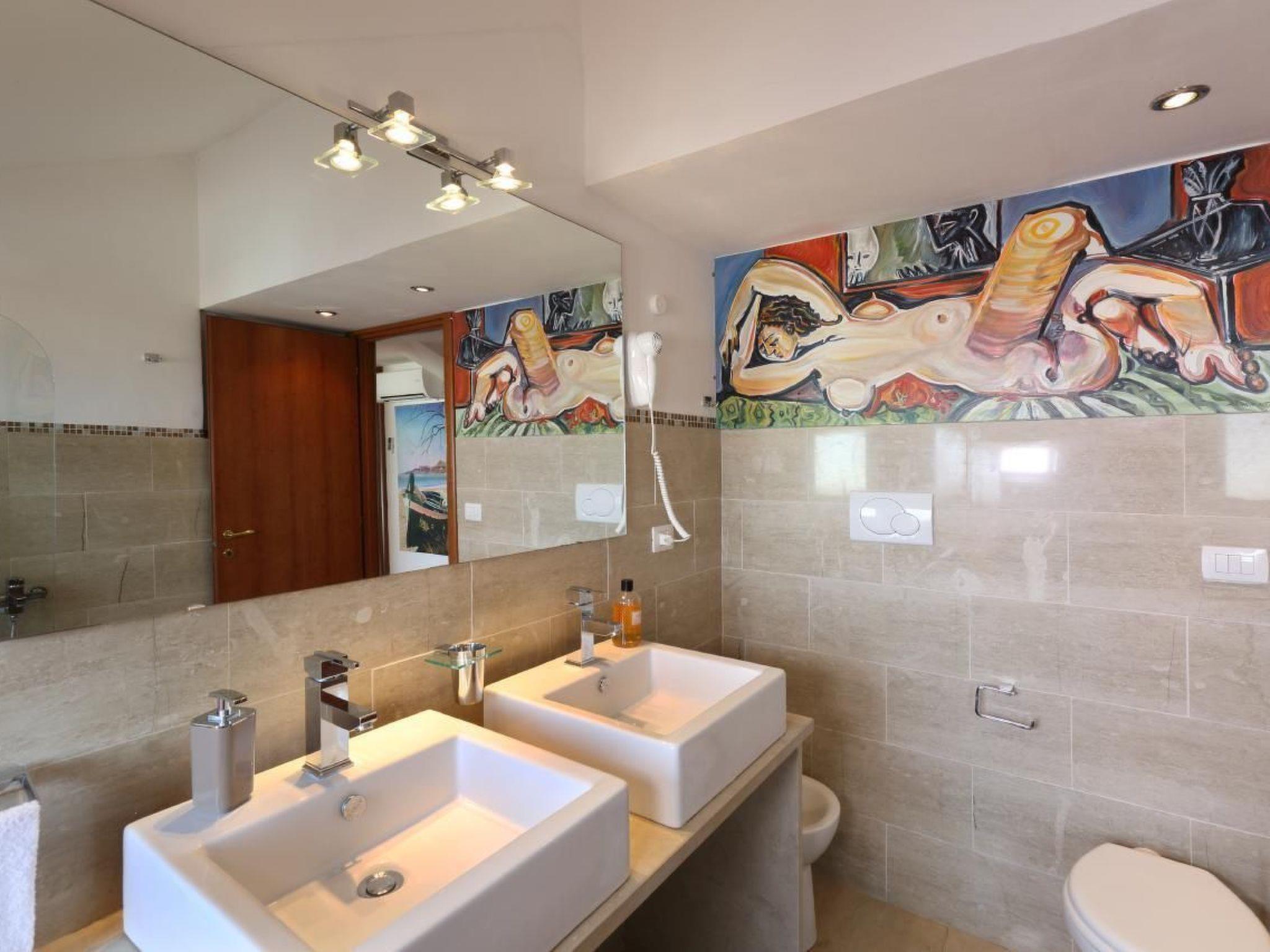 - 1 x large bathroom with double washbasin, bathtub with shower, WC, bidet and unique sea view