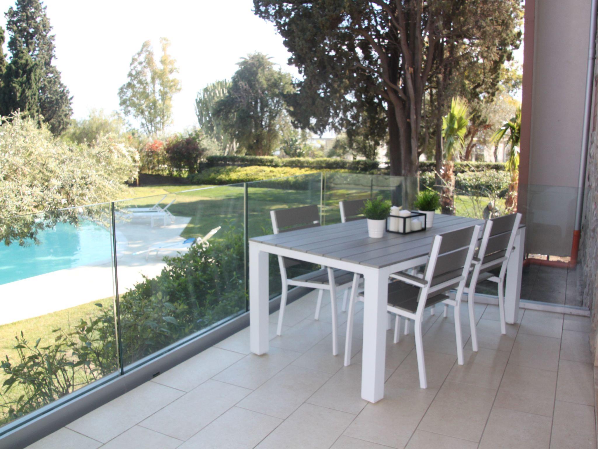 Terrace furnished with table and garden furniture. Private parking is available on site.