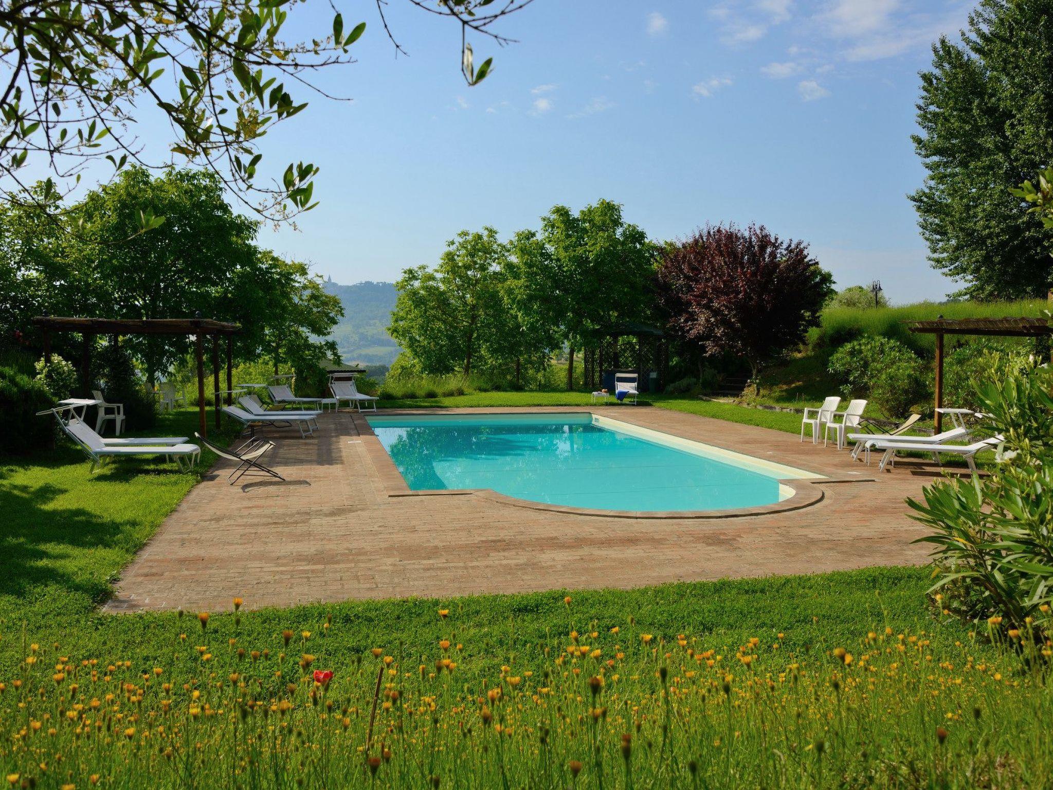 La Torriola is an agritourism, a country villa with 4 independent flats, all with a private portion of garden and garden furniture for outdoor dining. The view is spectacular, right in front of the ancient city of Todi.Seemingly far from everything, immersed in nature and in the quiet of the woods and rolling Umbrian hills, but only 5 minutes from everything you may need (in the nearby village of Ponterio, 3 km. two supermarkets, three bars, pizzeria, two banks, pharmacy and dozens of shops).The location is strategic for easily visiting all of the'Umbria ed essere di ritorno per un tuffo in piscina o un'aperitif before dinner. We are 3 km from the E45 motorway.