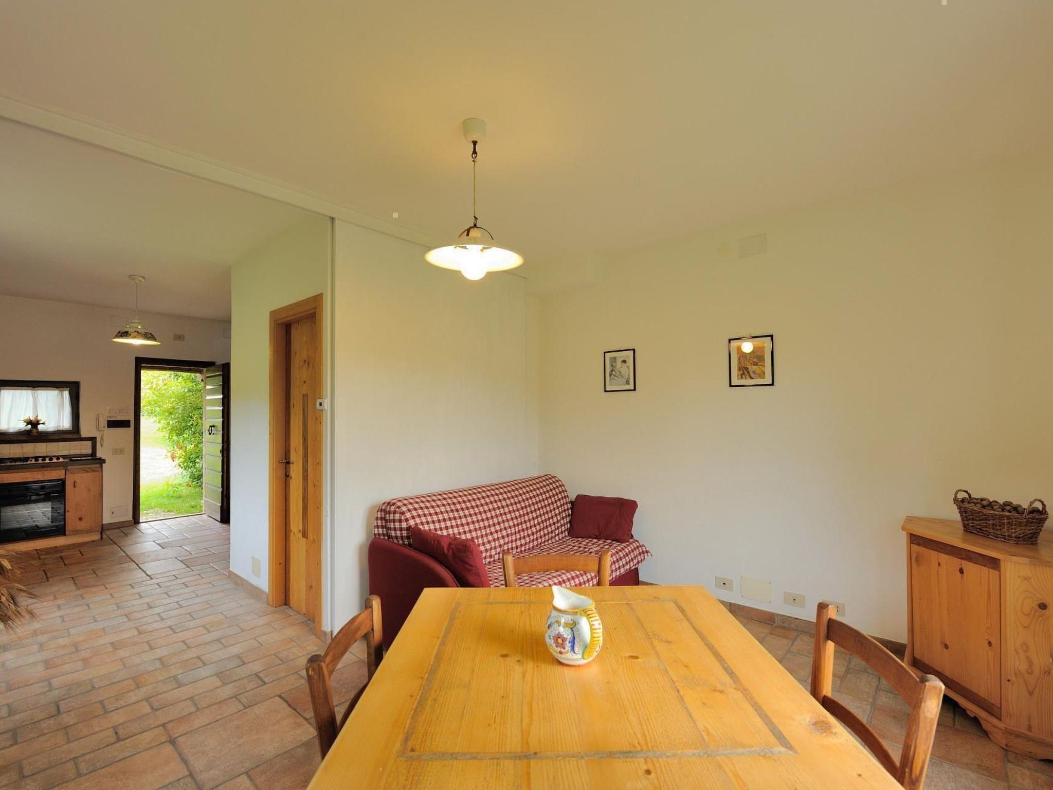 Il Glicine is an independent flat, about 72 square metres, on two levels. Upstairs double bedroom, twin bedroom, bathroom. On the ground floor kitchen, living-dining room, bathroom. Private portion of garden, with garden furniture for dining at'aperto.L’occupazione normale, sulla quale sono calcolati i prezzi, è di 4 persone. Nel soggiorno c’è un comodo divano letto che, a richiesta e con supplemento di prezzo, può ospitare una quinta persona.
