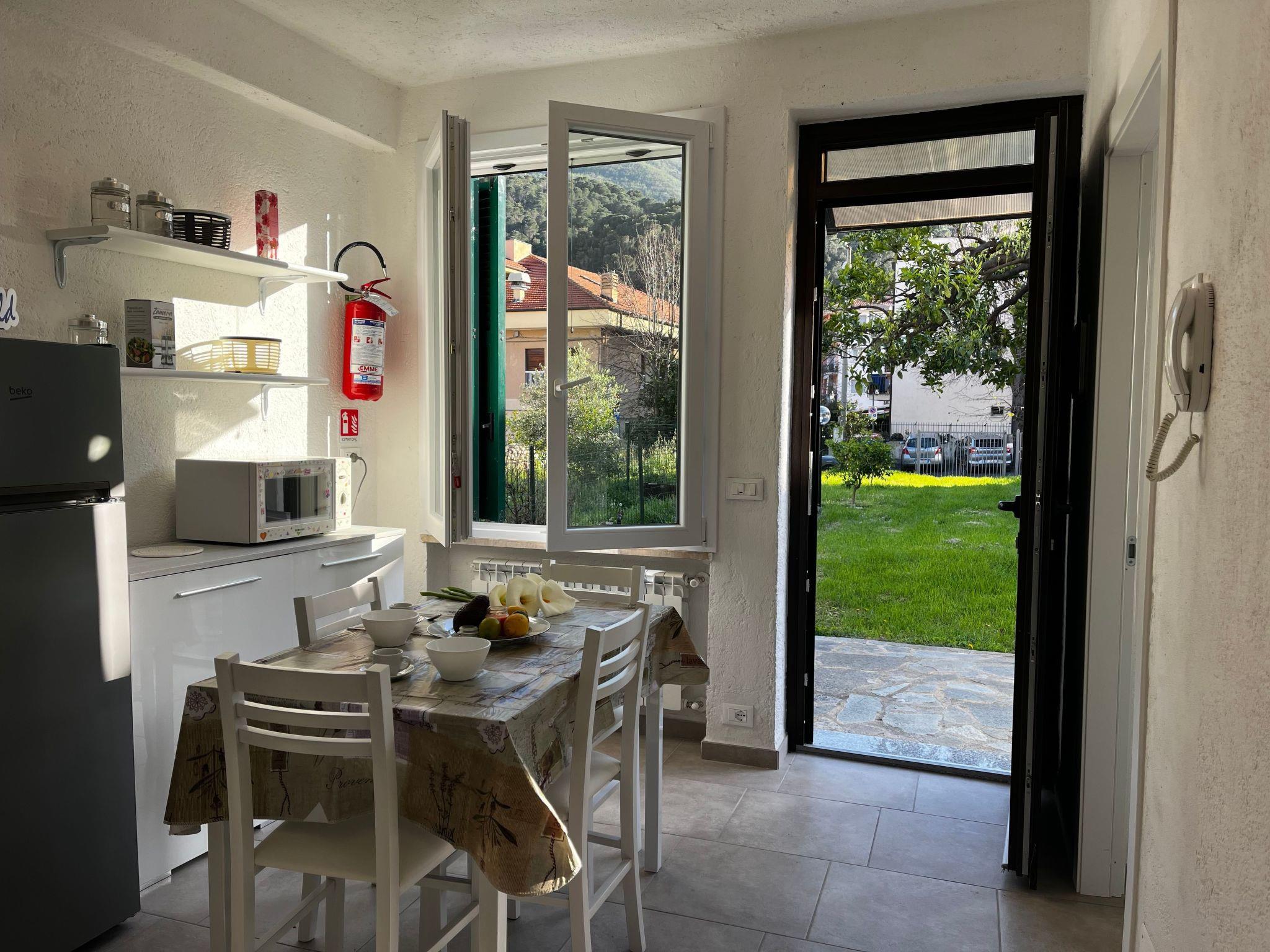 Located a few minutes from the renowned Toirano Caves and a short distance from Baia dei Saraceni, Casa Giorgia offers an intimate and cosy environment, ideal for two people. The interior reflects the authentic character of the Ligurian village, with typical elements and a warm, relaxing atmosphere. The living area consists of a fully equipped, independent kitchen with direct access to the private garden. This well-kept and peaceful outdoor space is perfect for relaxing moments, breakfast in the open air or romantic dinners under the stars. A bedroom with a double bed and a complete bathroom with shower and bidet complete the accommodation. A private parking space is available on the premises, in addition to the possibility of public parking nearby. An excellent choice for those who wish to experience an authentic stay, immersed in the tranquillity and tradition of a Ligurian village, in close contact with nature and the beauty of the area.