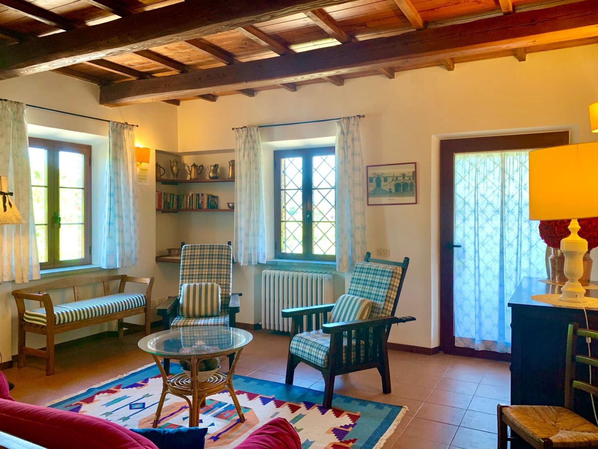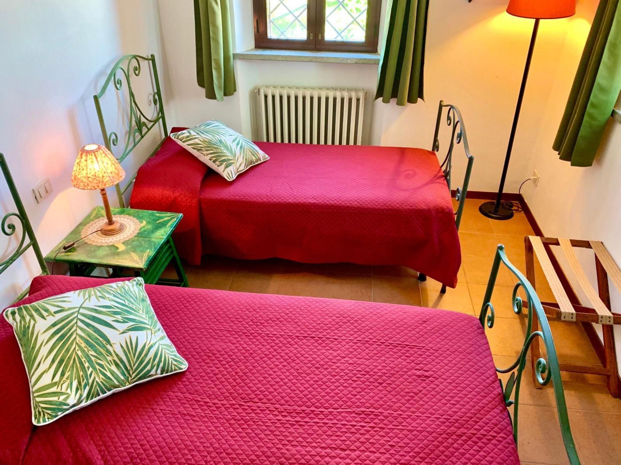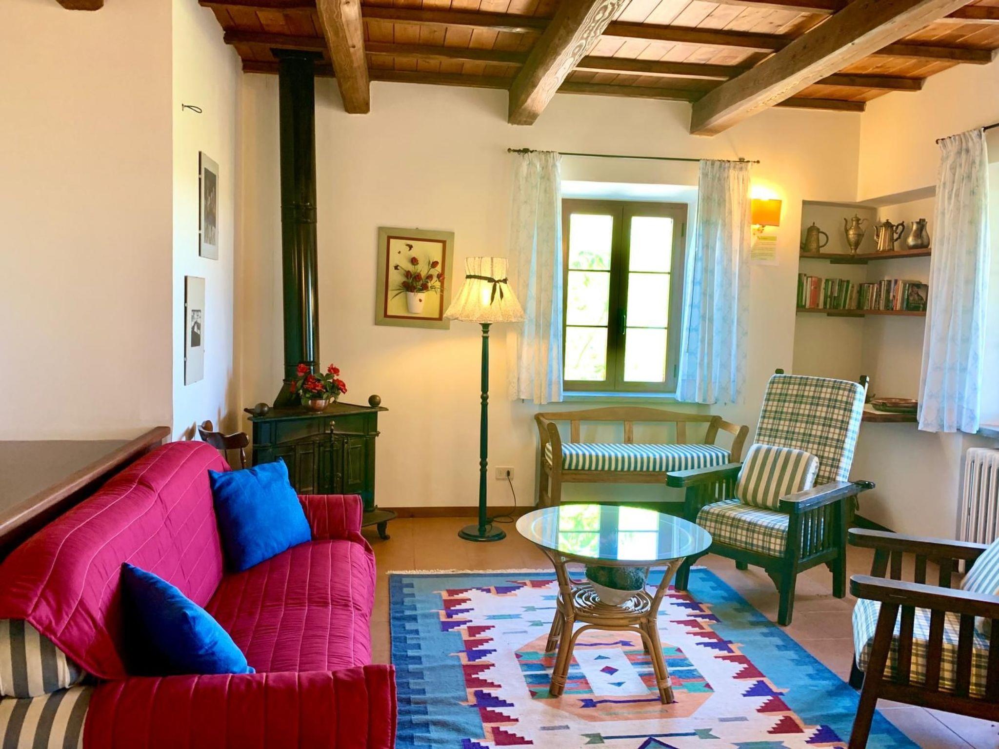 The farmhouse offers two spacious and comfortable flats of 140 sqm each, ideal for families or groups of friends. Skilfully restored, the main farmhouse dating back to 1900, together with its annexe, has on the ground floor a spacious dining/kitchen and sitting area, a bedroom with two beds, and a bathroom with shower. On the first floor there is a large and bright living room with a cast-iron stove and fireplace, a double room with a cot, a room with two beds, and a bathroom with bath and shower unit. Equipment such as an iron, a safe, a washing machine, and all the conveniences of a modern kitchen are at guests' disposal.