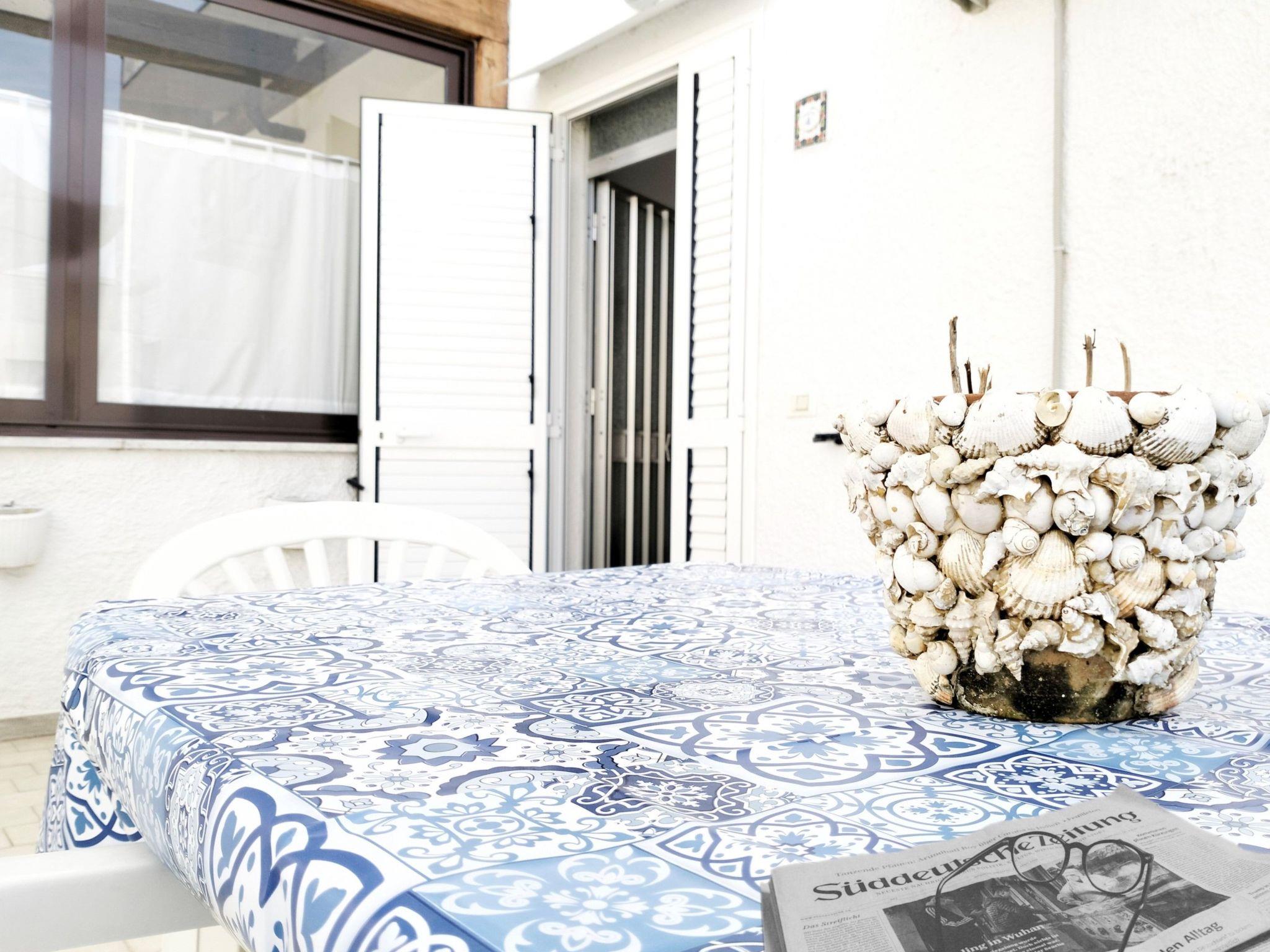 To enjoy your meals outdoors and to spend pleasant moments of relaxation, at the entrance to the flat