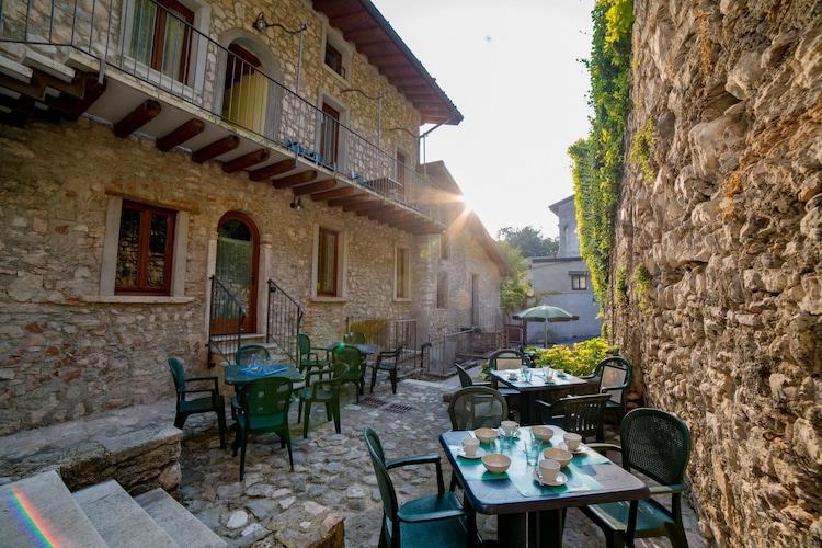 Oprindeligt fra det 16. århundrede og stilfuldt renoveret, er bygningen med dens historiske gårdhave beliggende i en terrasseret have med naturstensvægge. Fra poolen har du en smuk udsigt over landsbyen og søen. Det velholdte kompleks er især populært blandt familier. Toscolano-Maderno er et sammensmeltet tvillingested adskilt af en torrent. Maderno har en strand, barer og restauranter. Ikke egnet til personer med nedsat mobilitet