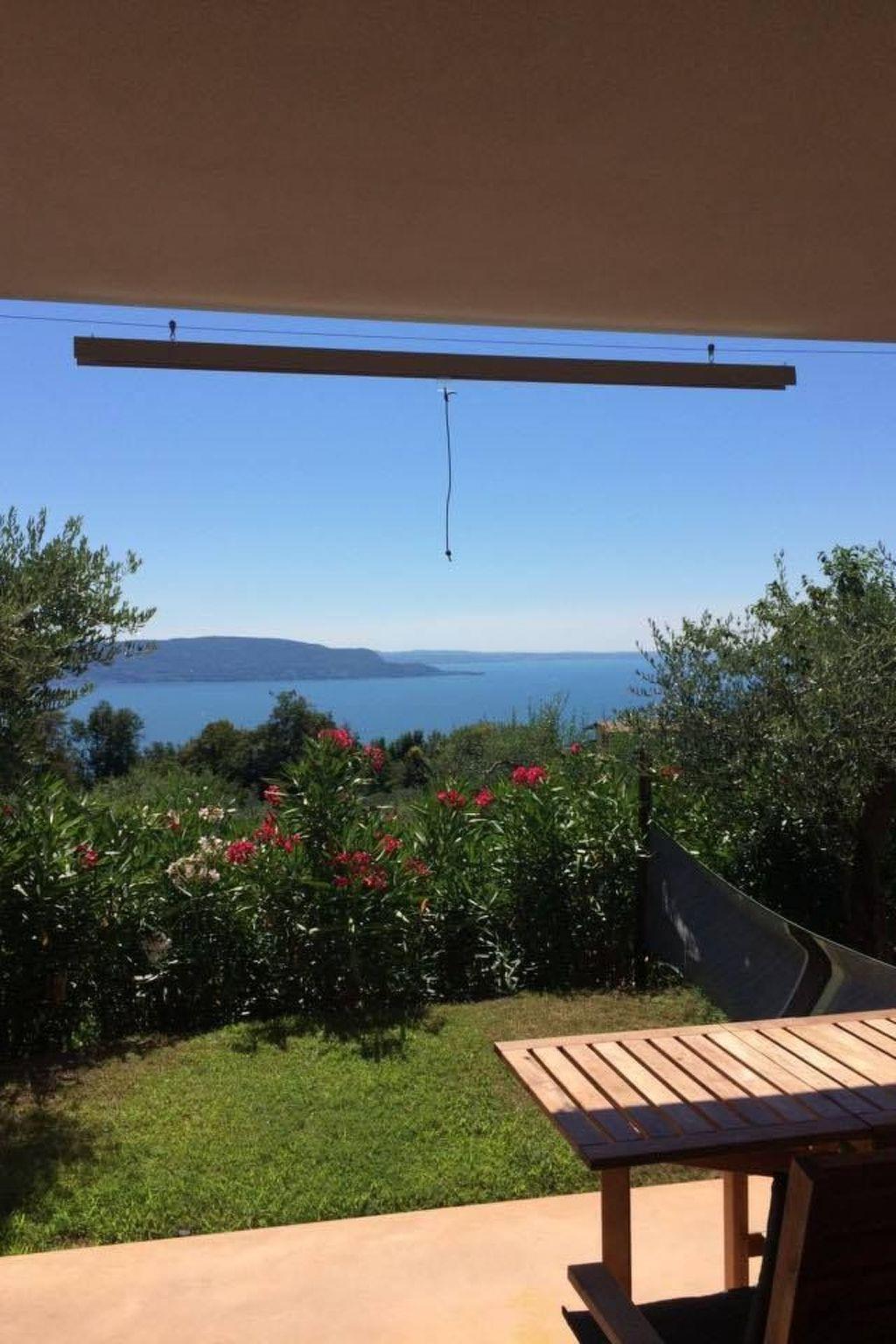 There is a balcony, a communal swimming pool with a view of the lake and sun loungers, an outdoor shower and a car park.