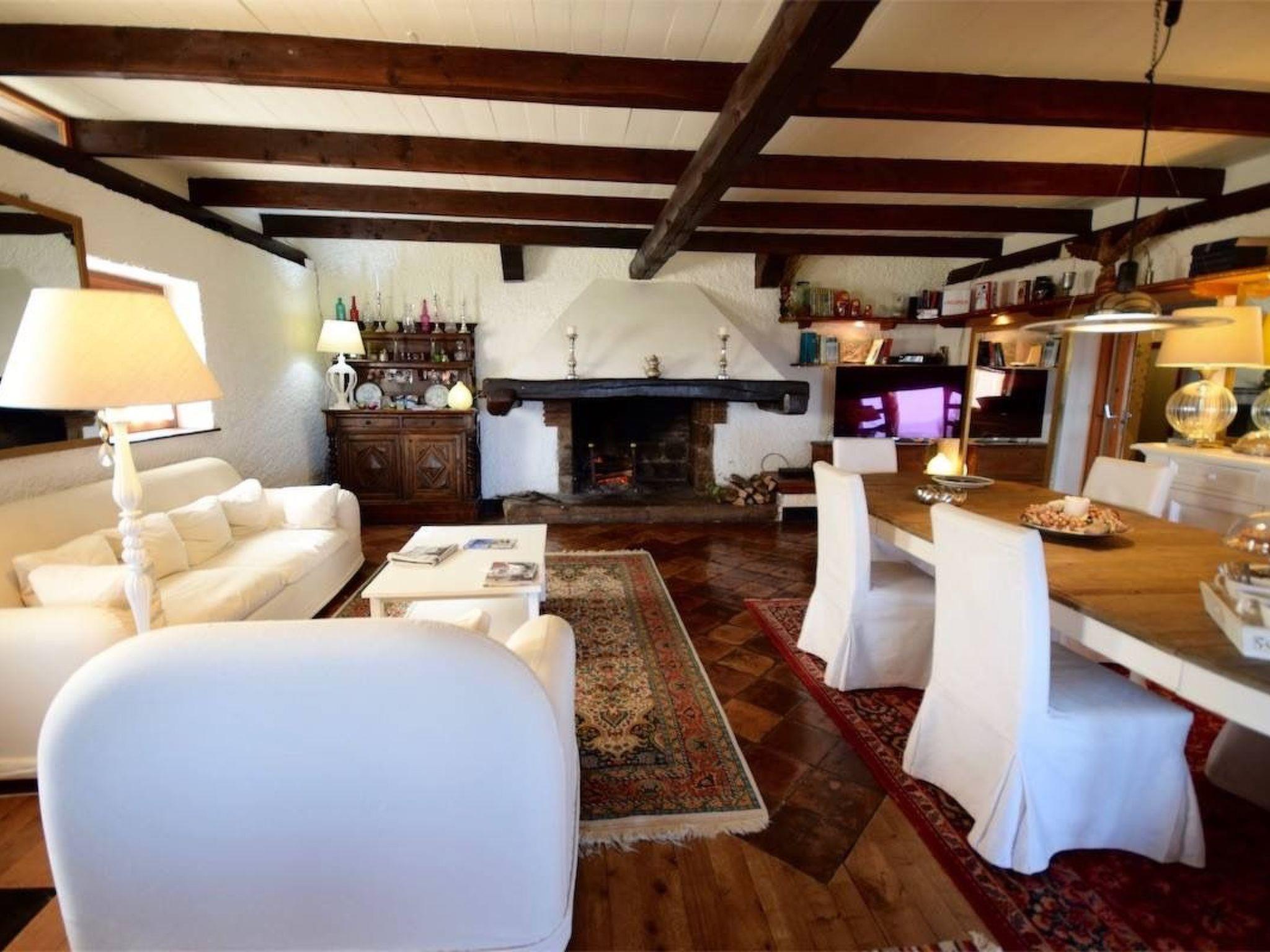 The kitchen is fully equipped, large living room with fireplace, ground floor study (bedroom), bathroom with shower, utility room with washing machine. A wooden staircase leads to the first floor with 2 double bedrooms with bathroom with bath and shower, balcony with panoramic view. The upper floor has 2 double bedrooms with en-suite bathrooms and a balcony with views of the surrounding hills. Total of 5 double bedrooms, a single sofa bed and 3 bathrooms, 2 with shower and one with bath. Baby bed on request.