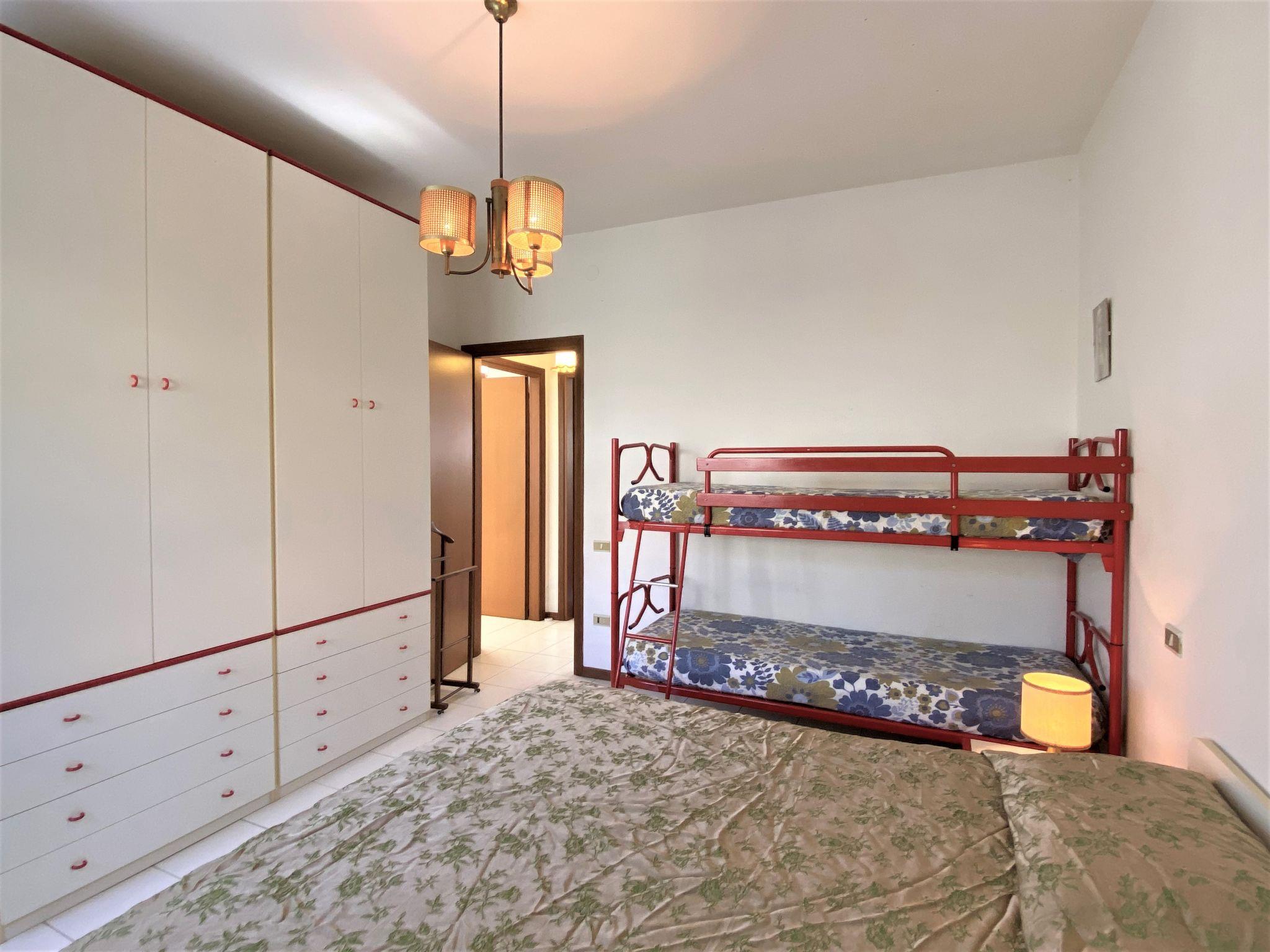 "Palazzeta IV", 3-room apartment 55 m2, on the upper floor. Practical furnishings: living/dining room with dining table and satellite TV. 1 double bedroom with 1 double bed (160 cm). 1 room with (80 cm), 1 x 2 bunk beds, 1 double bed. Open kitchen (oven, 4 gas rings, microwave). Bath/bidet/WC. No heating option. Small balcony. Balcony furniture. Facilities: washing machine, baby cot for up to 2 year olds (extra). IT049017C2DK328EP2